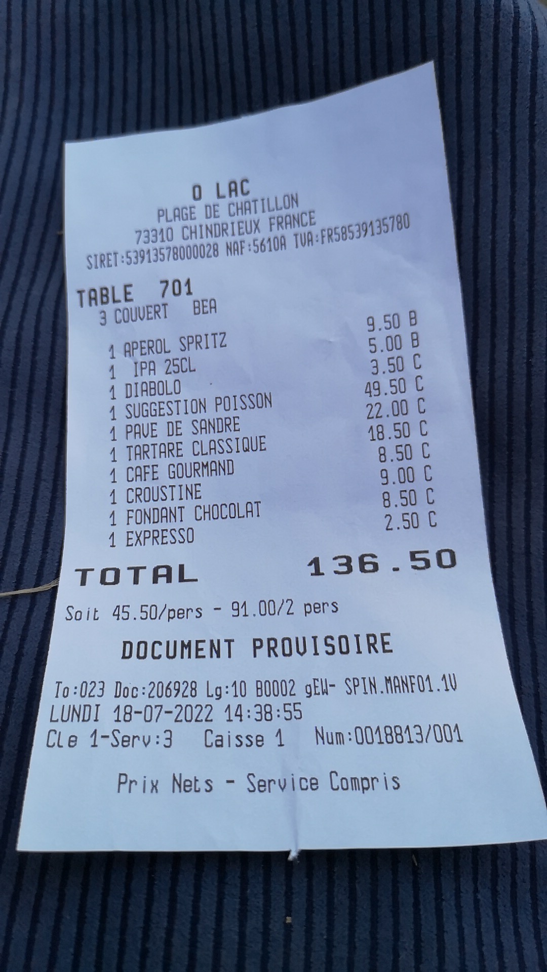 J'ai passé un très bon moment dans ce restaurant au bord du lac. Le serveur était aux petits soins et son petit accent de Montpellier n'était pas de trop. Les plats, certes un peu chèrs étaient de qualité composé de produits frais et fait maison. Cela fesait longtemps que je n'avais pas mangé une salade César aussi bonne. Quatre étoiles pour les tarifs appliqués