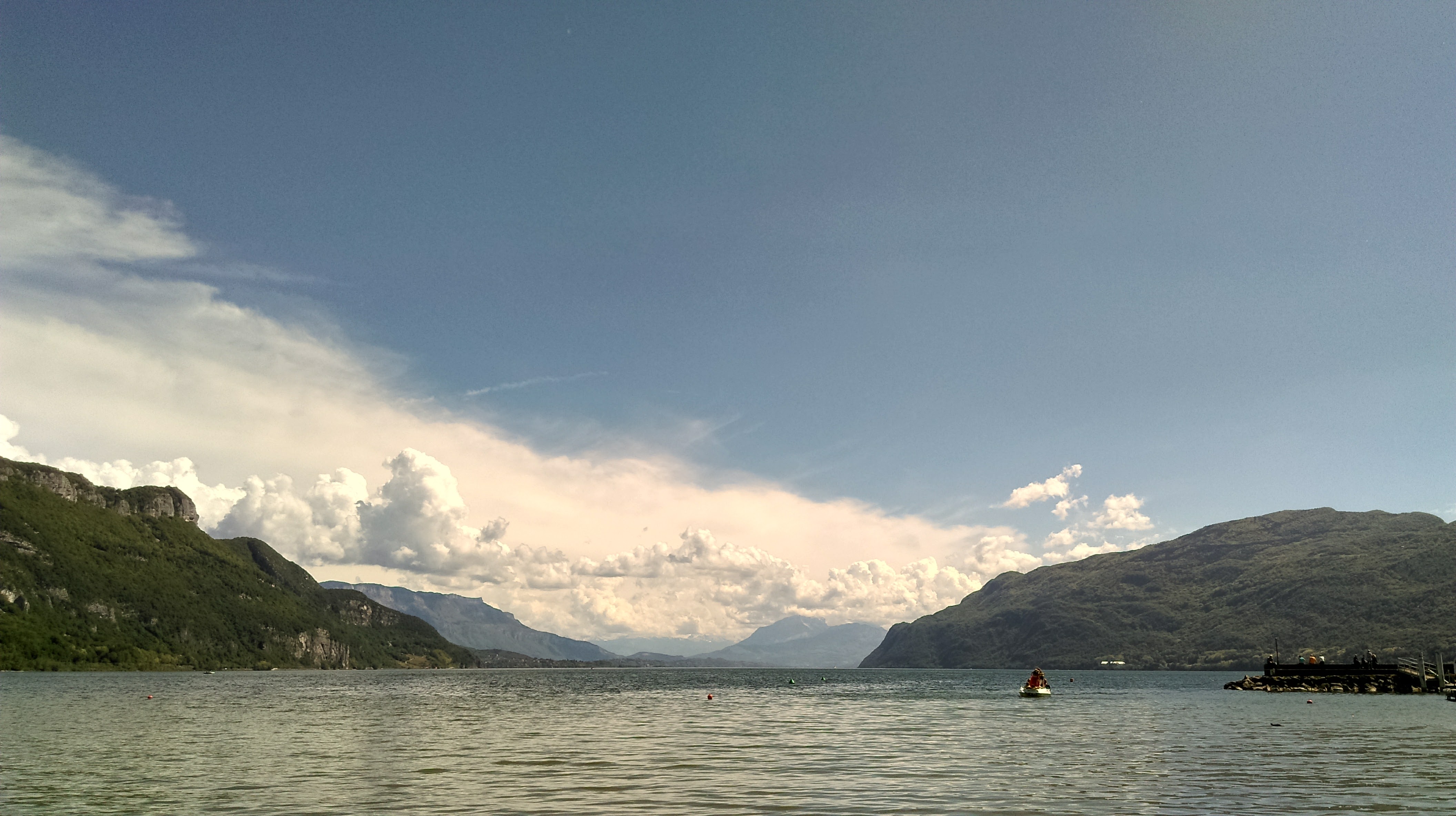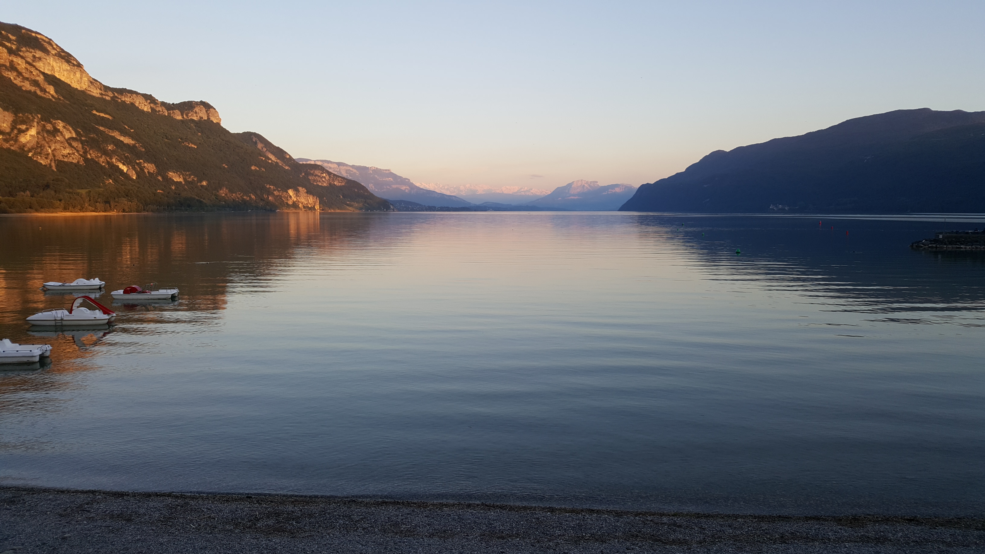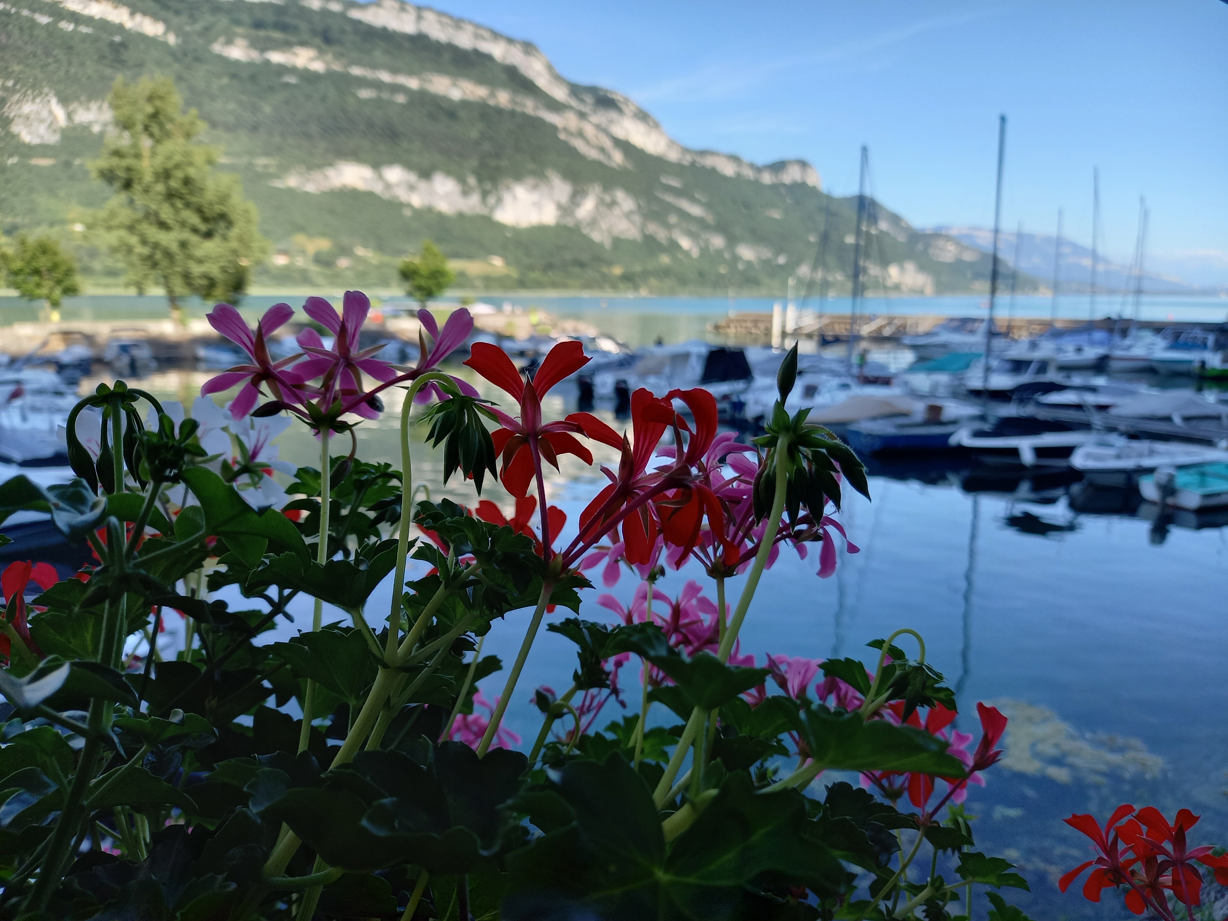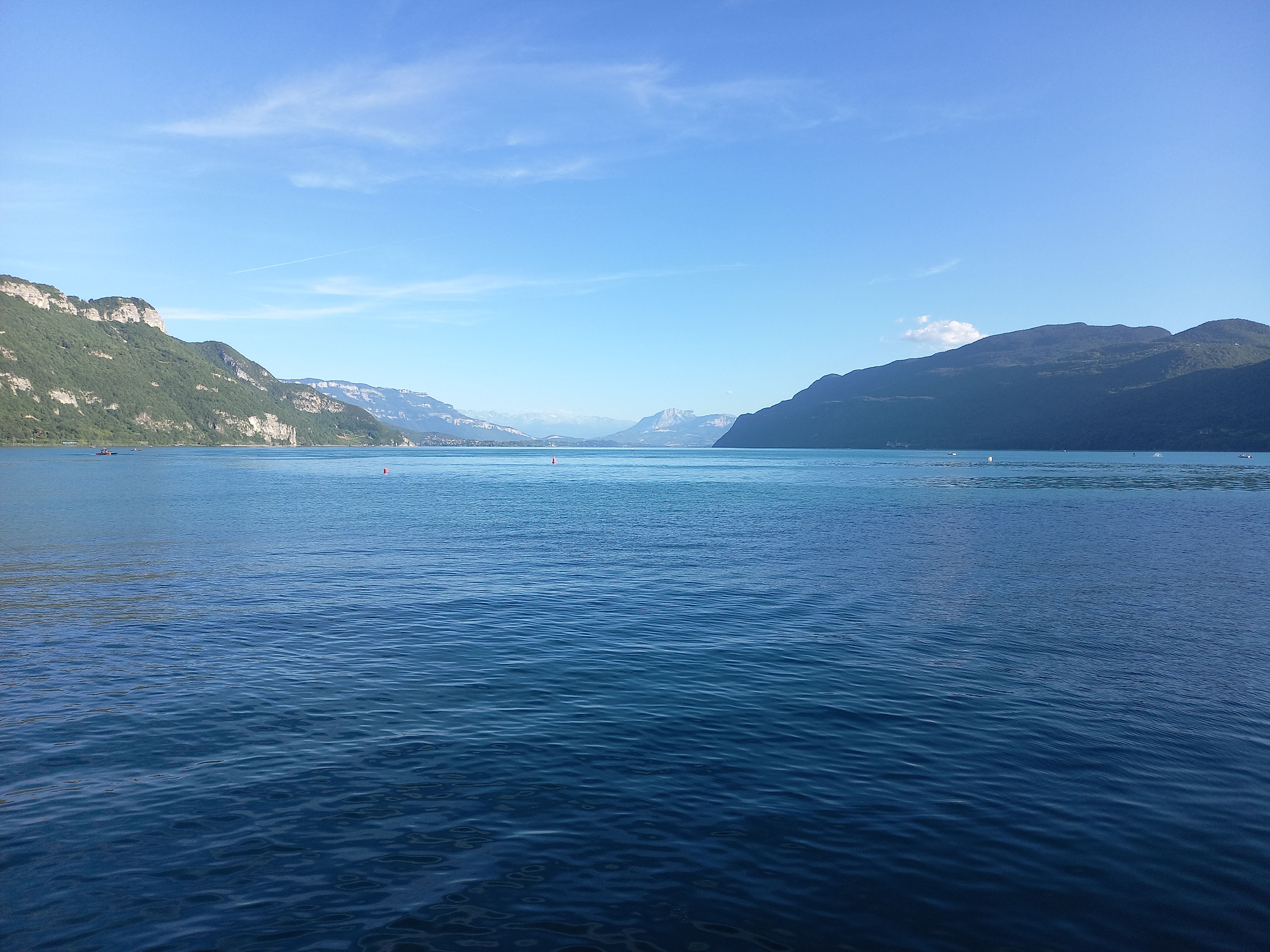 Une impression de vacances à la mer. Situé au bout du lac, terrasse en gradin, vue sur lac, ombragée avec brumisateur. Plats de bon niveau et carte des vins de prix raisonnable, beaucoup de vin de chautagne ou de jongieux. Incontournable. Prudent de réserver.