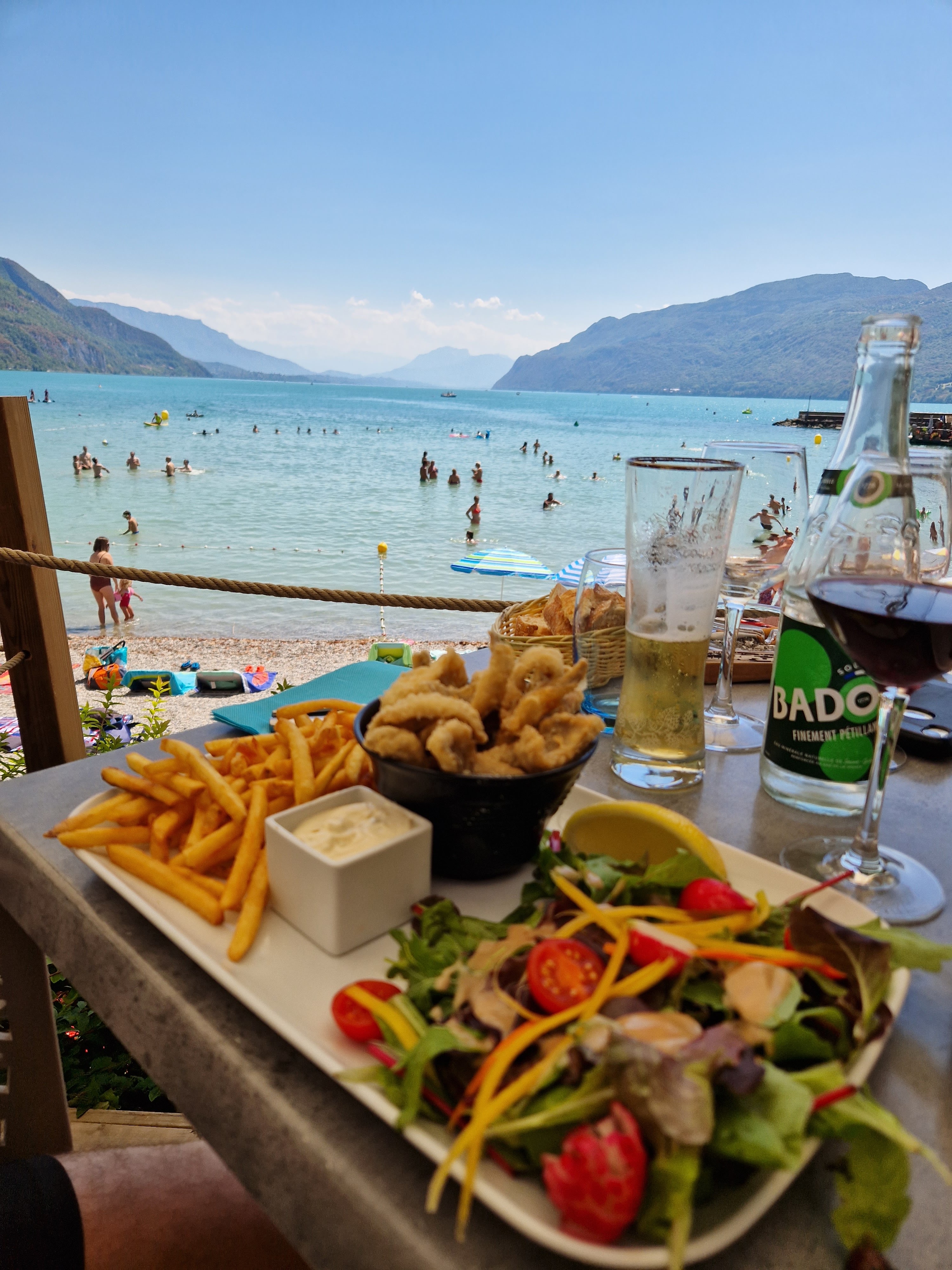 Belle vue, cuisine simple et bonne. Une belle paillote de plage (avec les prix qui vont avec) et une vue unique sur le lac du Bourget