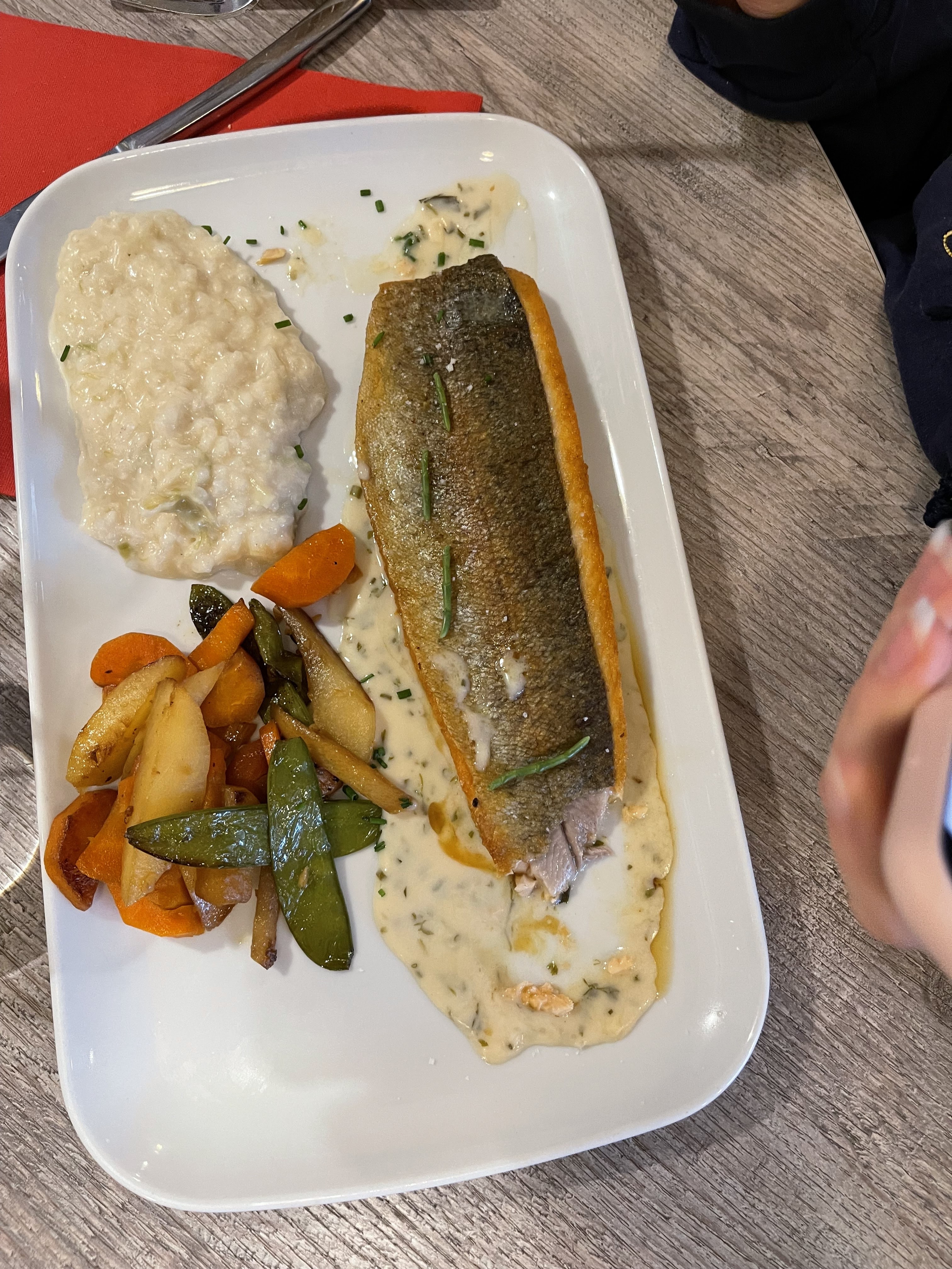 La vue sur le lac est superbe, surtout le soir à la nuit tombante. Dans l’assiette, on a droit à une sélection assez large. Perso, j’y vais pour les poissons.