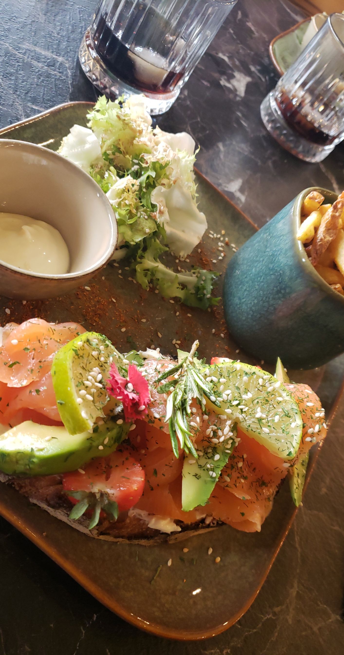 Bon mais j'ai pris un tartare de saumon à l'avocat et c'était plutôt un tartare d'avocat au saumon malheureusement Le prix est excessif comparé à la quantité... dommage car c'était très bon