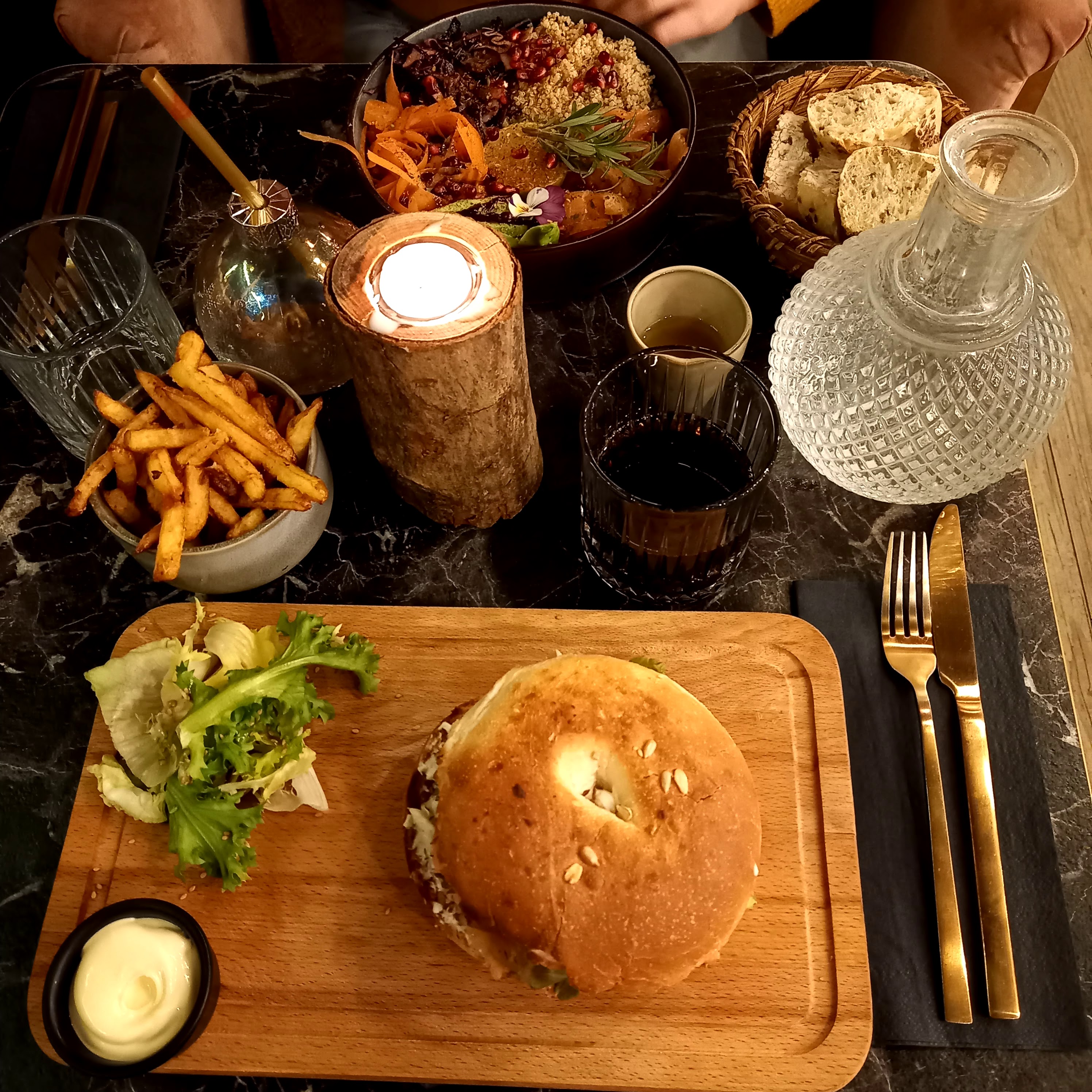 Petite resto avec des amis, l’ambiance est vraiment trop top ! Le service était rapide, les serveuses étaient très agréables. Pour le repas : Le burger de noël était vraiment très bon, j’avais de beaux morceaux de foie gras et les frites de patates douces … mon dieu que c’est bon 🤤. Par contre c’était peut être un peu gros pour moi, j’ai eu du mal à finir, je n’ai pas pu prendre de dessert, je vais être obligé de revenir ^^. En définitive on a passé un très bon moment en profitant d’un repas très agréable !