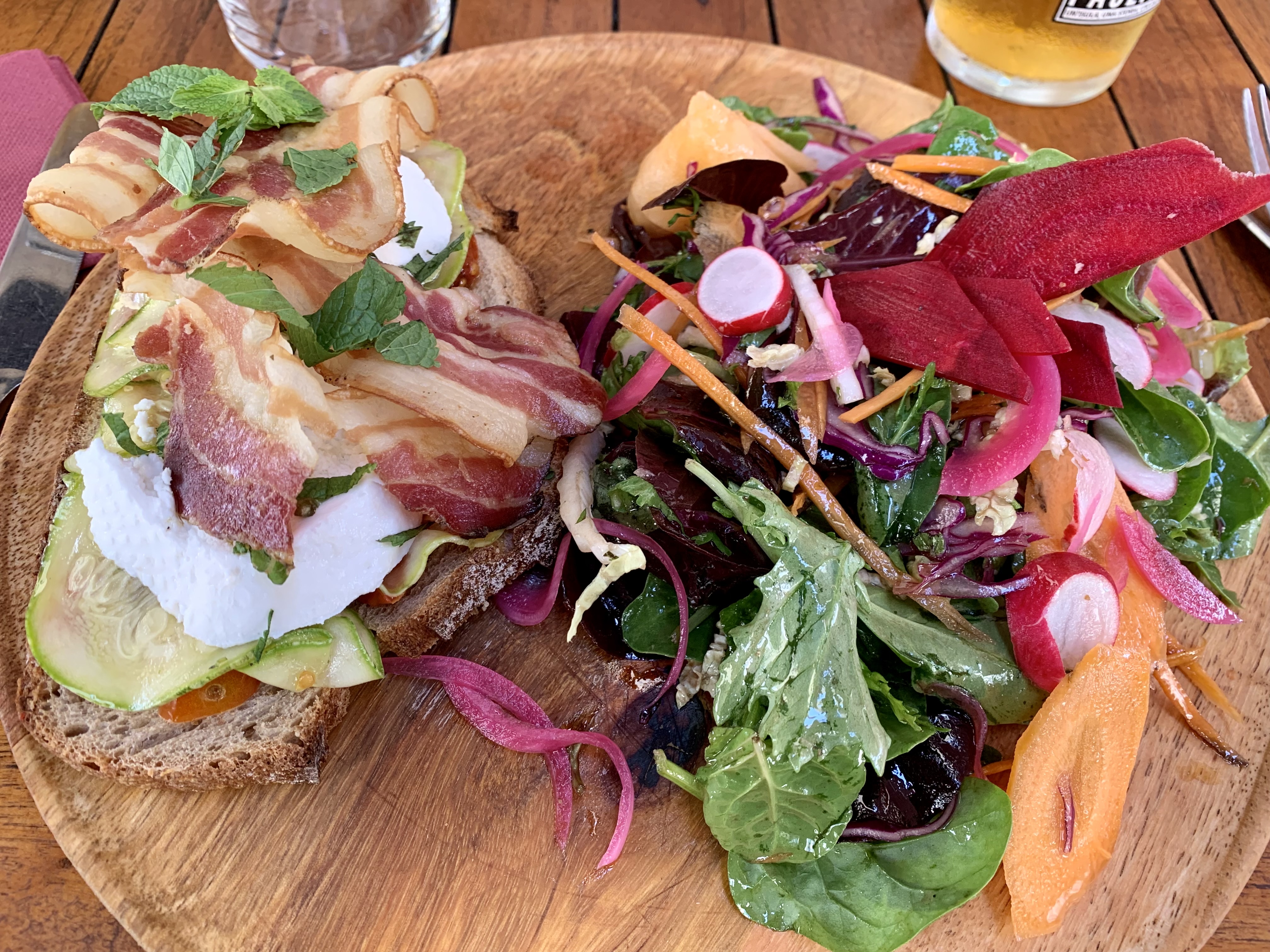 Une belle surprise. Les boissons aux fruits sont faites maison et de bonnes bières . De succulentes tartines. La carte n'est pas grande mais les produits sont frais et les plats préparés maison.
