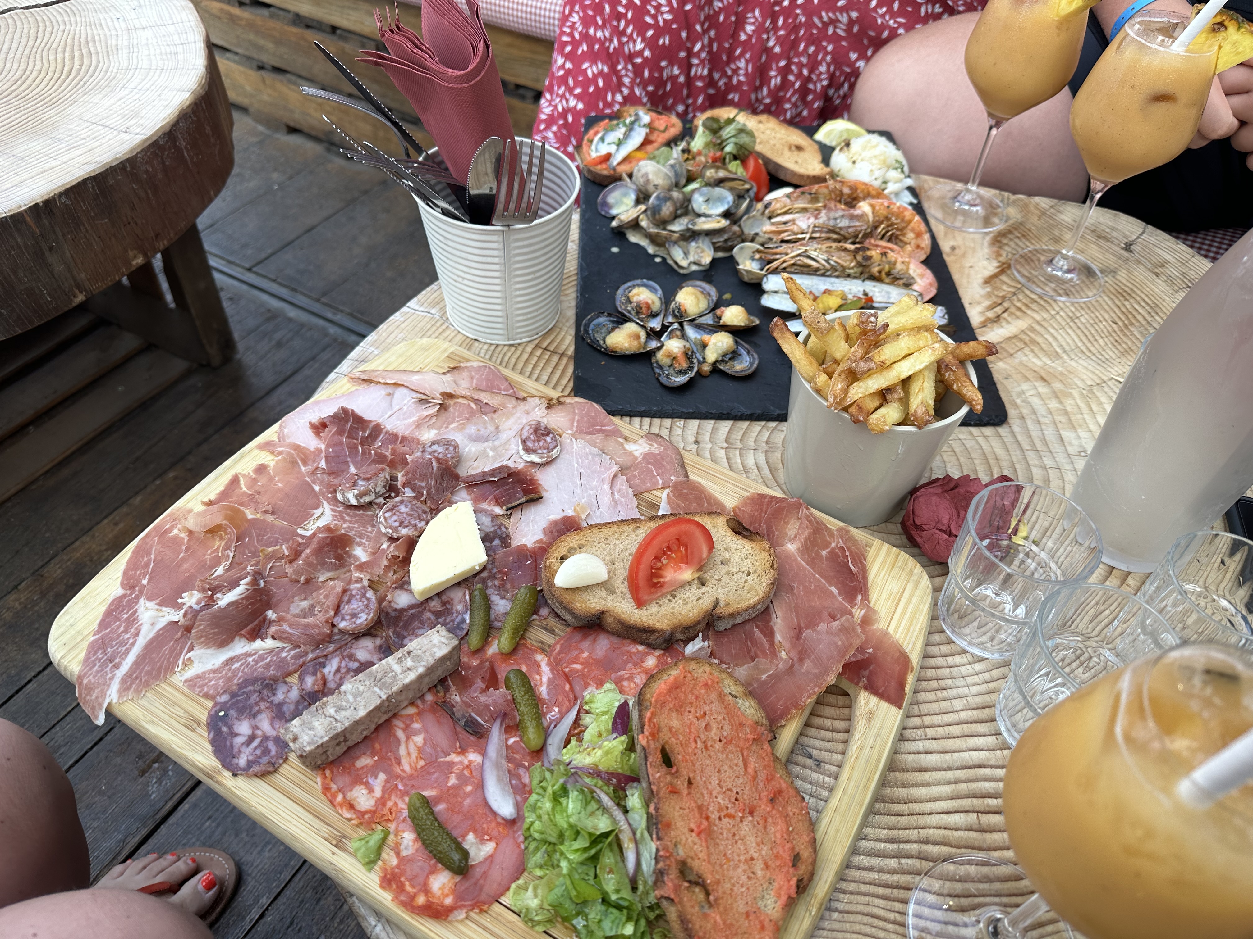 Planche, service correct, et agréable 👍🏻 Hormis les coktailq que je ne conseille absolument pas. Nous avons demandé de moins les charger ce qui a été fait. Mais cela reste tout de même trop chargé ou bien le rhum n'est pas bon. Malgré qu'ils n'ont pas été consommé, et rendu dans le verres ils ont tout de même été facturé.