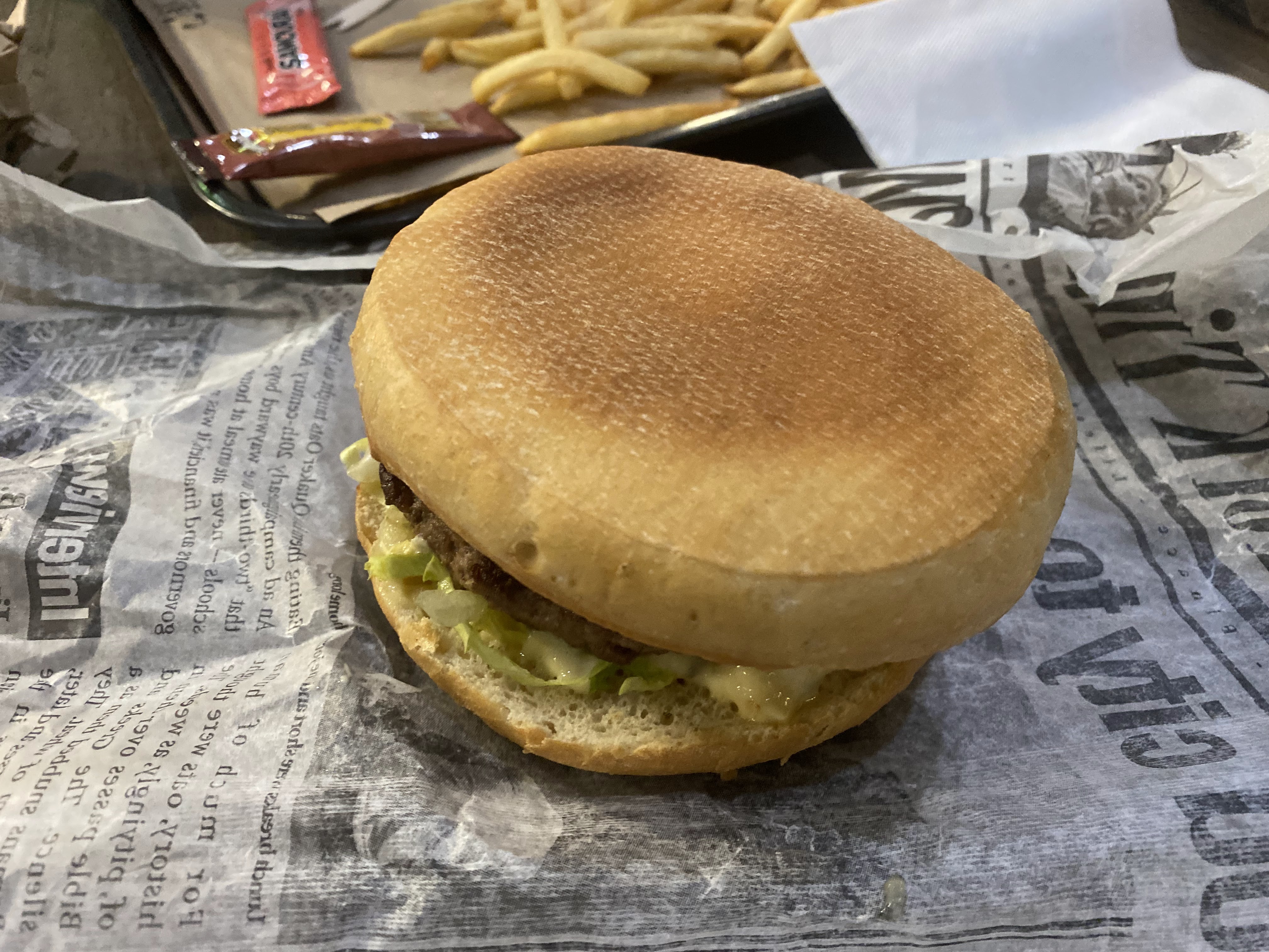 Attente convenable (10-15 mn). Burger plutôt bon mais frites et fritures pas bonnes, je ne sais si ça vient de l’huile de friture ou quoi mais tout ce qui était fris avait un arrière goût rance. Cette visite est en demi teinte, je ne sais pas si je reviendrais.