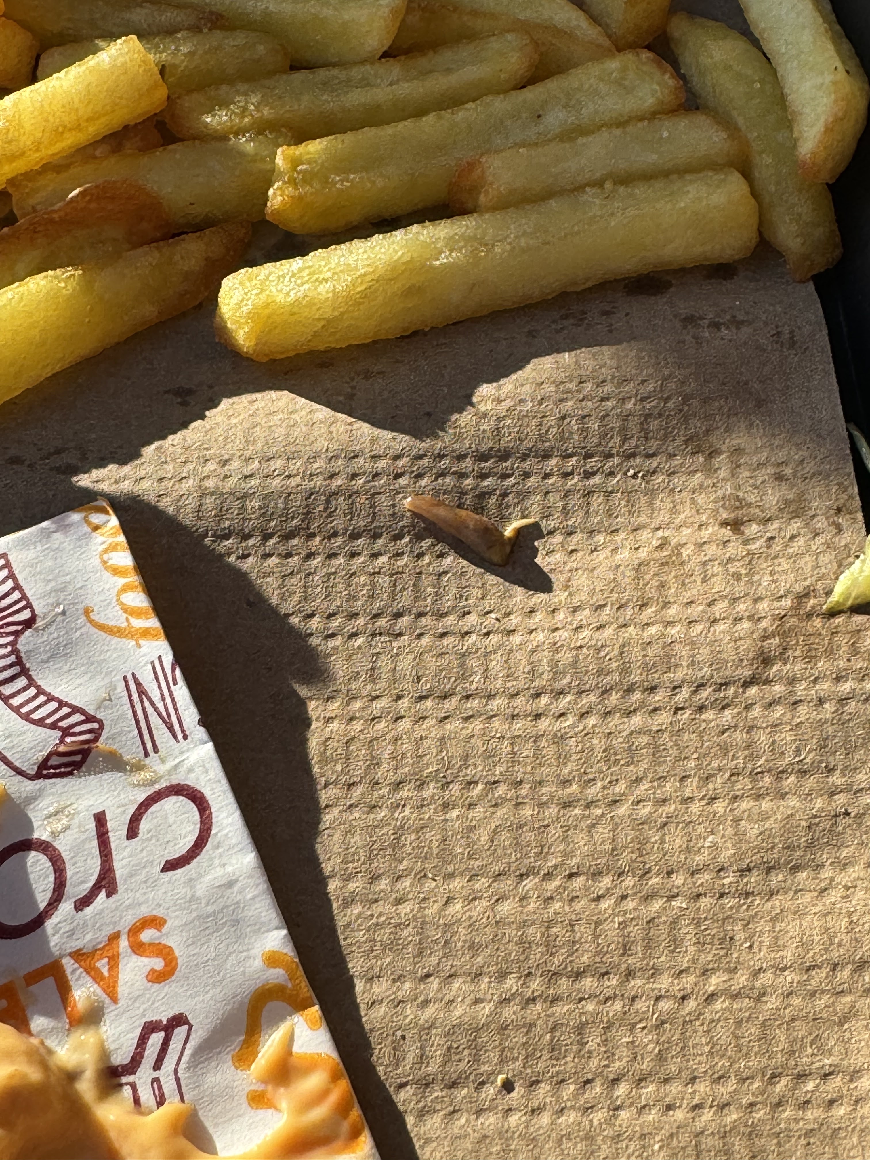 Très déçu. Frite froide, un poulet de très mauvaise qualité et tout ça pour un prix exorbitant . Plus de 5 euros pour un wrap immangeable , le pain est mouillé. Vraiment pour le peu de poulet que vous mettez dedans vous pourriez au moins faire un effort sur la qualité. Ce n'est pas dans mon habitude de mettre ce genre de note mais là pour ce tarif là je trouve ça abusé. Changez de qualité ou fermez car même des animaux méritent une meilleure qualité. Mon chien n'en a pas voulu.