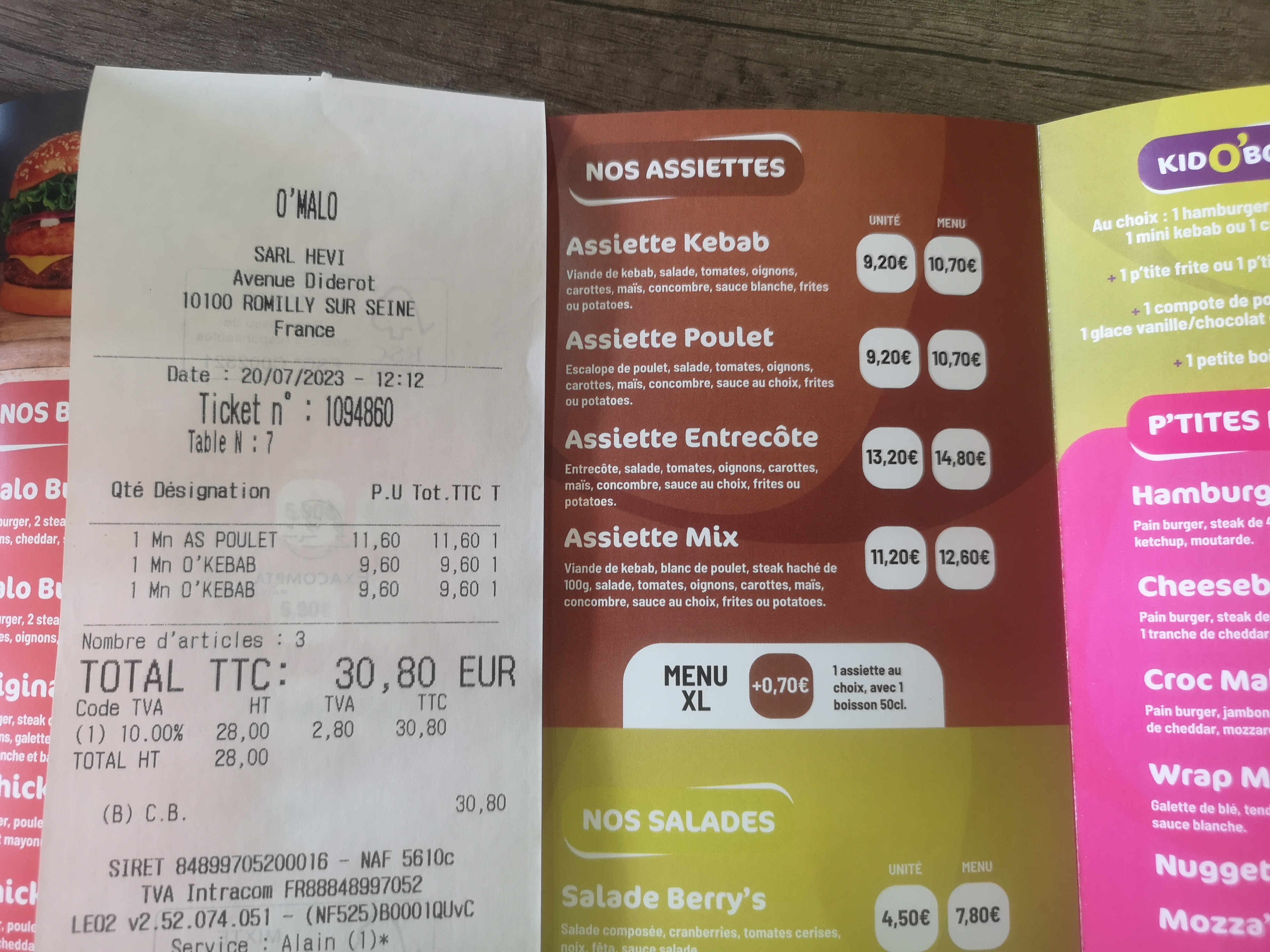 Bonjour, alors j'y suis allée 2 jours de suite, hier kebab, il était franchement très garni en viande, voir trop car j'ai calé avant d arriver au bout mais le hic c est que j'ai été malade juste après. Aujourd'hui tacos pour essayer autre chose et la franchement très déçue car la pâte était pas cuite j'ai dû vider le tacos dans mon assiette et jeter la pâte, et le poulet manquait également de cuisson, et mon mari a couru aux WC a la moitié du tacos...donc on va arrêter les frais