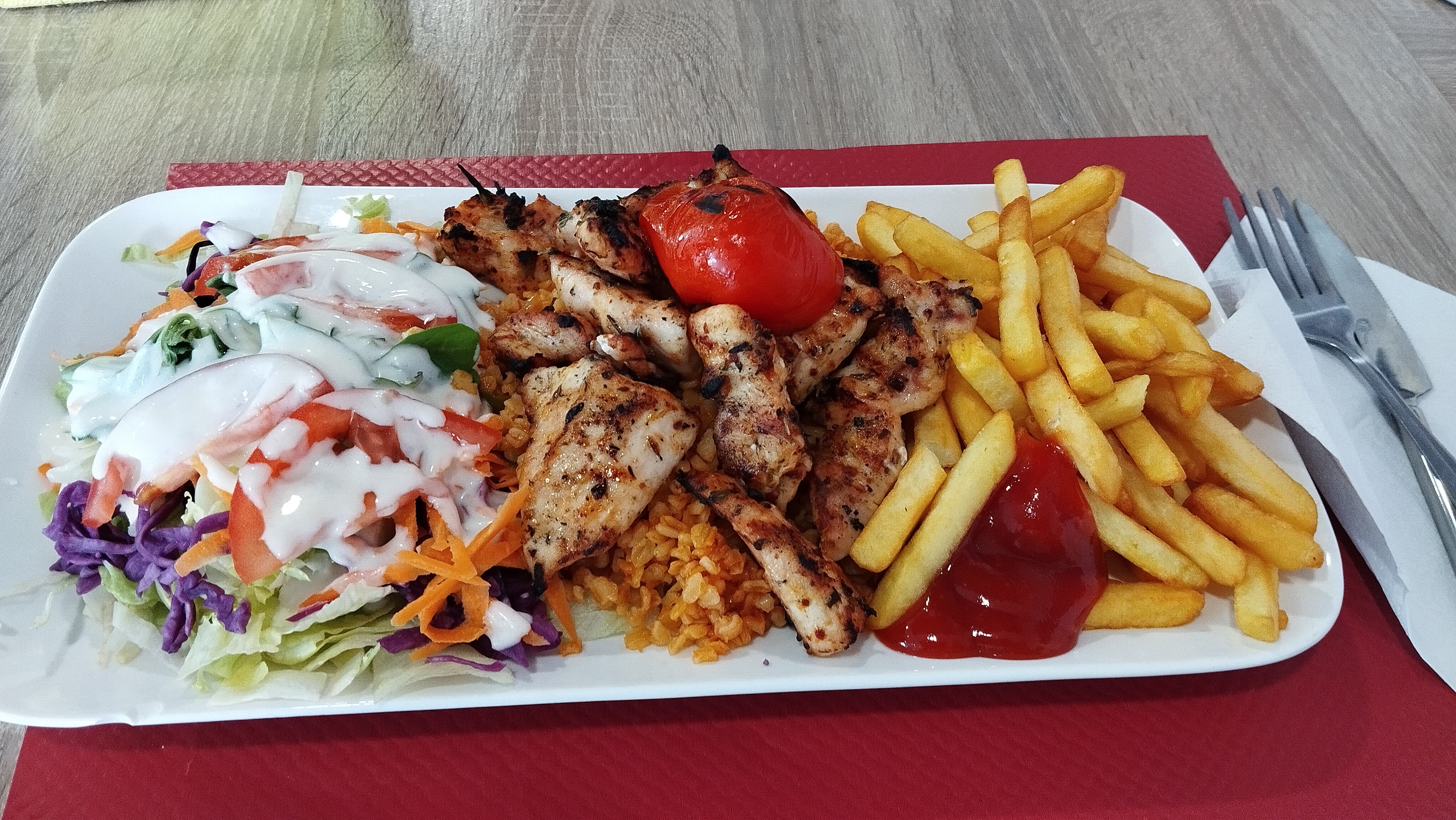 Nous avons pris un Döner kebab avec frite (faire attention car on nous a facturé un supplément sauce sans nous prévenir au début en pensant que c'était la sauce comprise dans le sandwich) et un Tavuk Pirzola (poulet braisé) qui étaient excellents. Les seuls mauvais points étaient la non compréhension du français et de l'anglais par la cuisinière auprès de qui nous avons pris commande (elle ne comprenait ni c'est quoi?, oui, non, ce ui devrait être basique pour une personne travaillant dans ce milieu) heureusement qu'une autre personne est arrivée ensuite pour nous expliquer. Également, la terrasse nous a dérangée alors qu'on était à l'intérieur car elle était bien ouverte sur l'intérieur laissant rentrer fortement les odeurs de cigarette d'une personne fumant depuis l'extérieur. Sinon rien à redire pour la cuisine, très copieux et de bonne qualité je recommande !