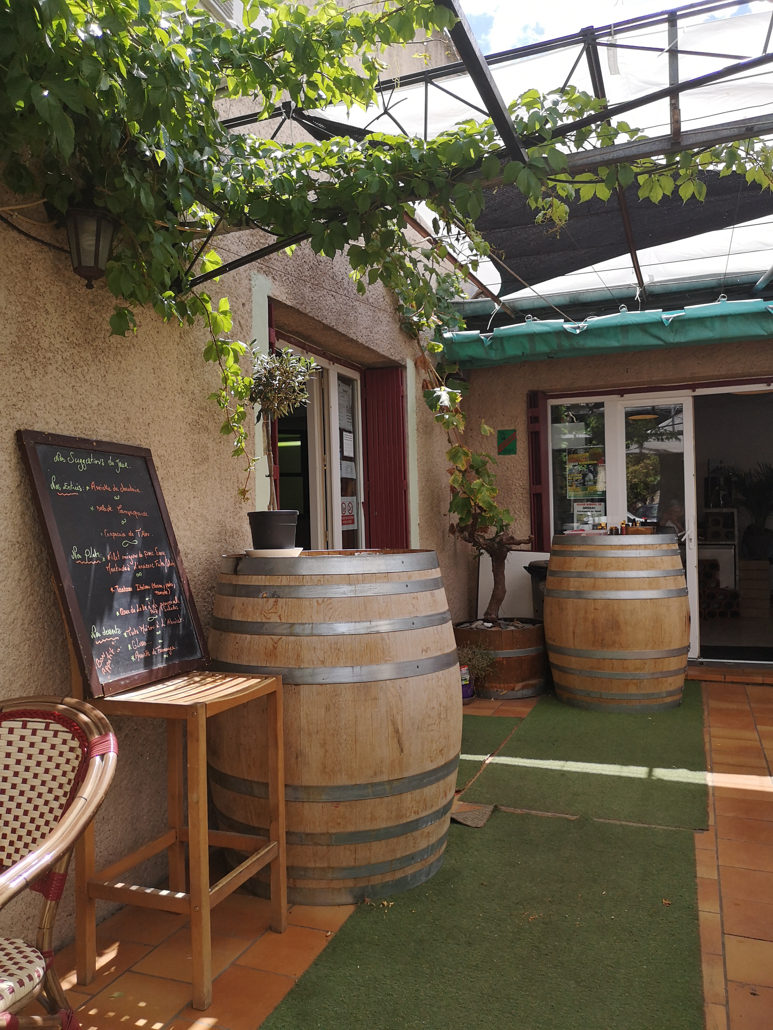 Petite terrasse agréable et ombragée. Le personnel est très accueillant et bien sympathique. Menu du jour très bon rapport qualité/prix et même modulable si un plat ne convient pas 🙂 de plus vin local très bon également. Nous avons passé un agréable moment et nous y reviendrons lors de nos prochains séjours.
