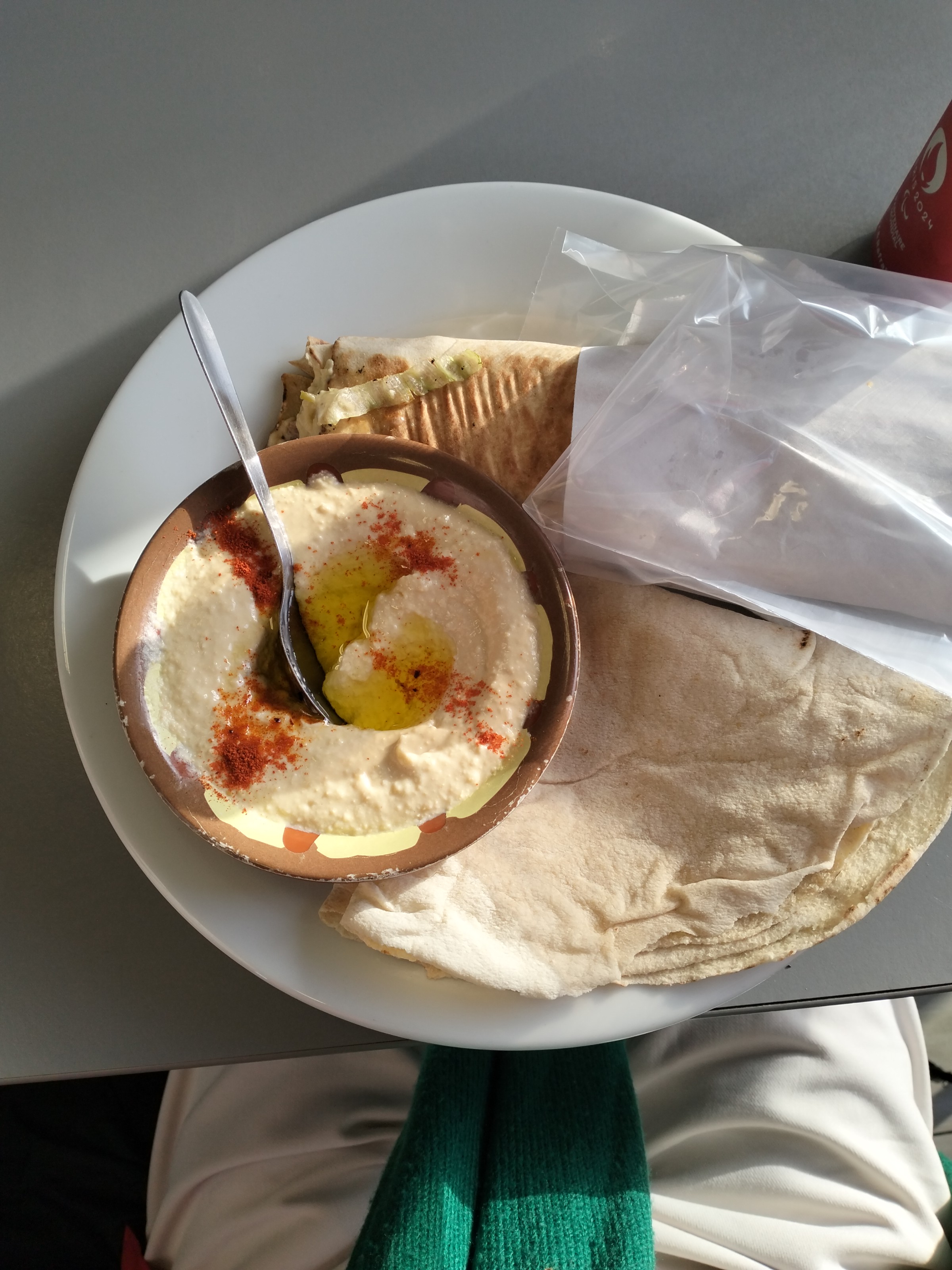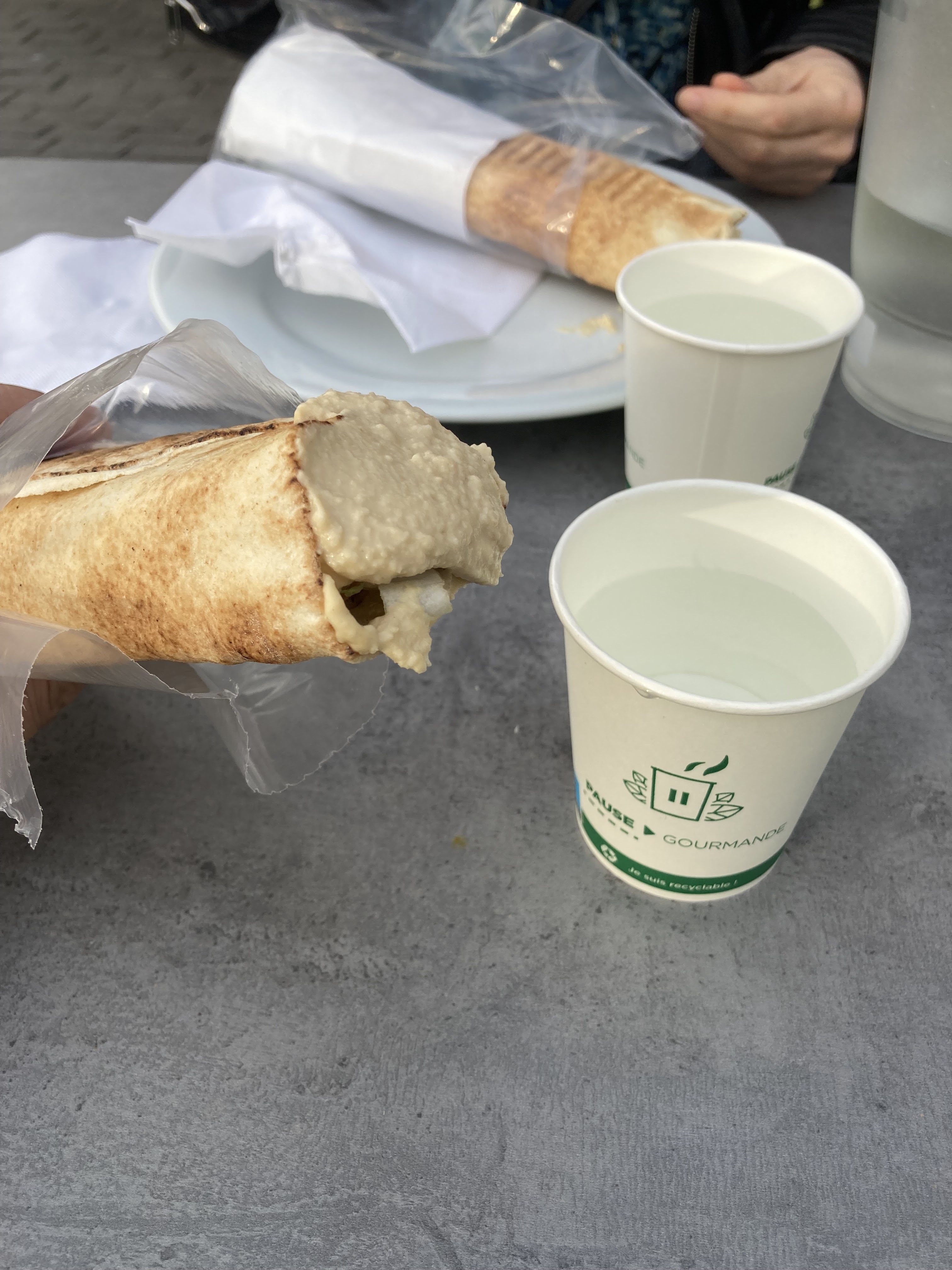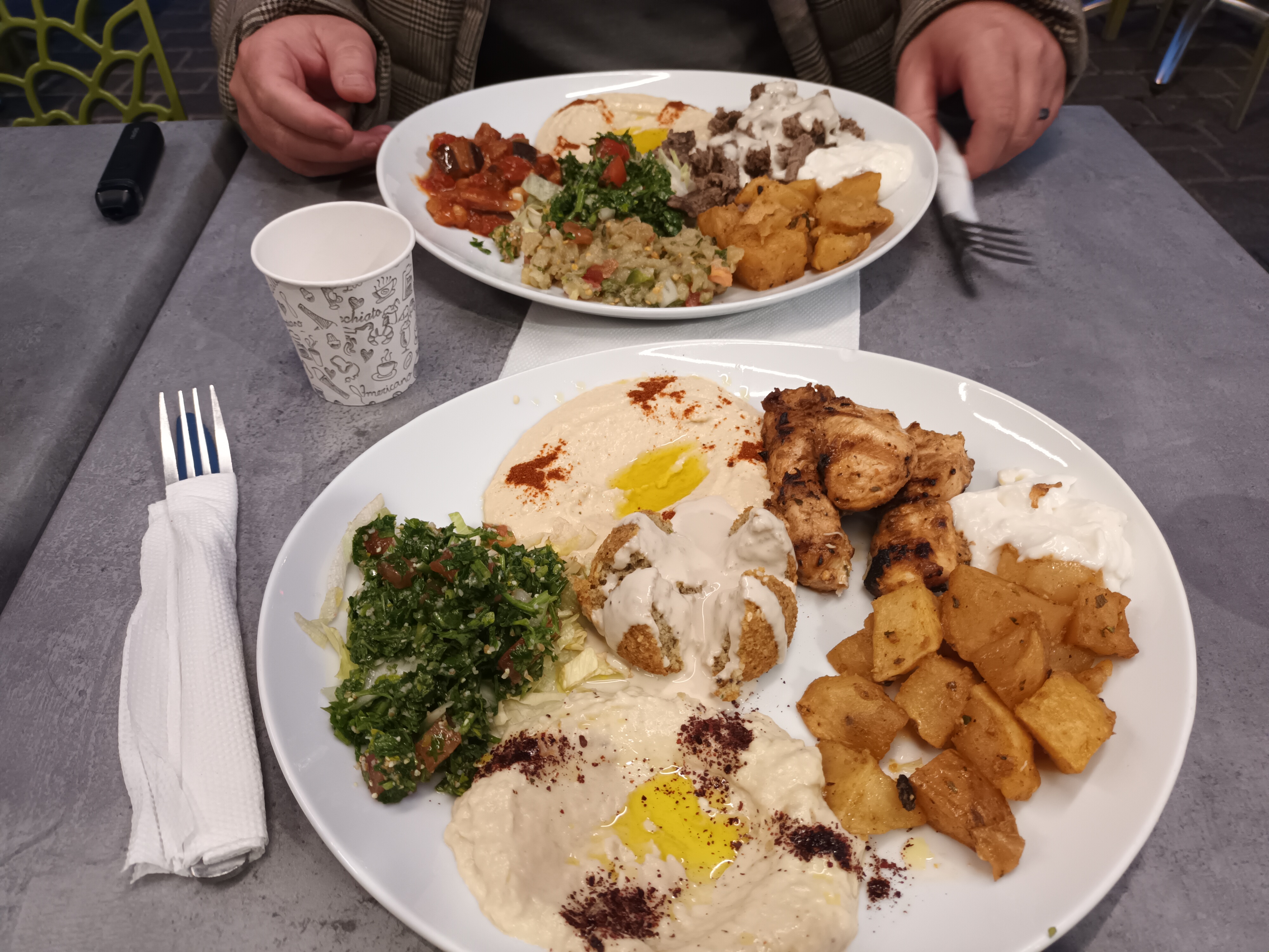 Franchement je recommande . Il faut l'essayer au moins une fois . N'étant que de passage je me suis laissée tenter . Les personnel est très accueillant. Avant même de passer commande on nous offre le thé qui au passage est très bon . J'ai pris le menu C avec du houmous comme hors d'oeuvre et je n'ai pas pu le finir tellement le menu est bon et généreux. Le shawarma est long et chargé . Le tout avec une boisson pour seulement 10€90 .