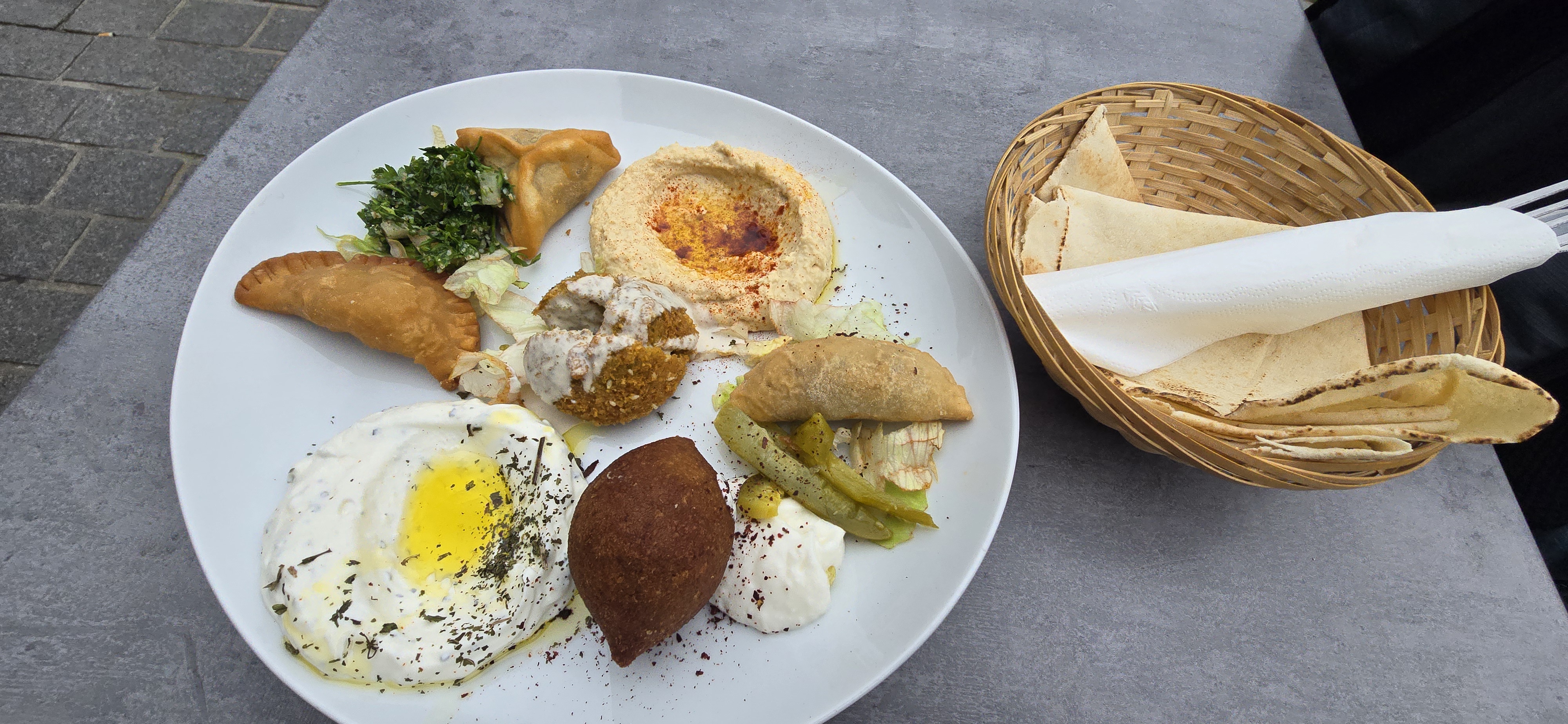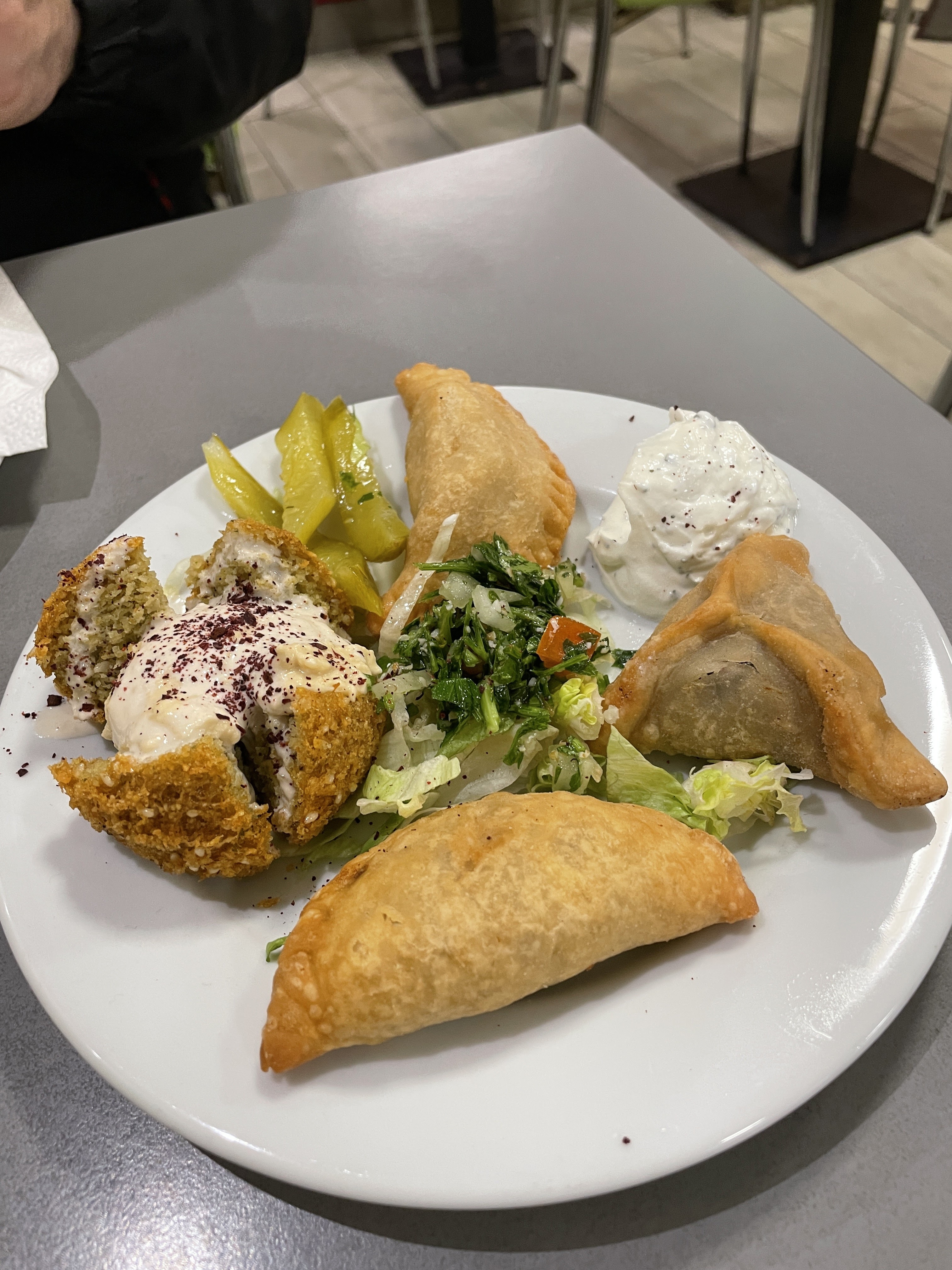 Bof... Assiette végétarienne un peu décevante pour le prix (deux ou trois spécialités, une cuillerée dhoumous, un quart de feuille de salade... 10 €).