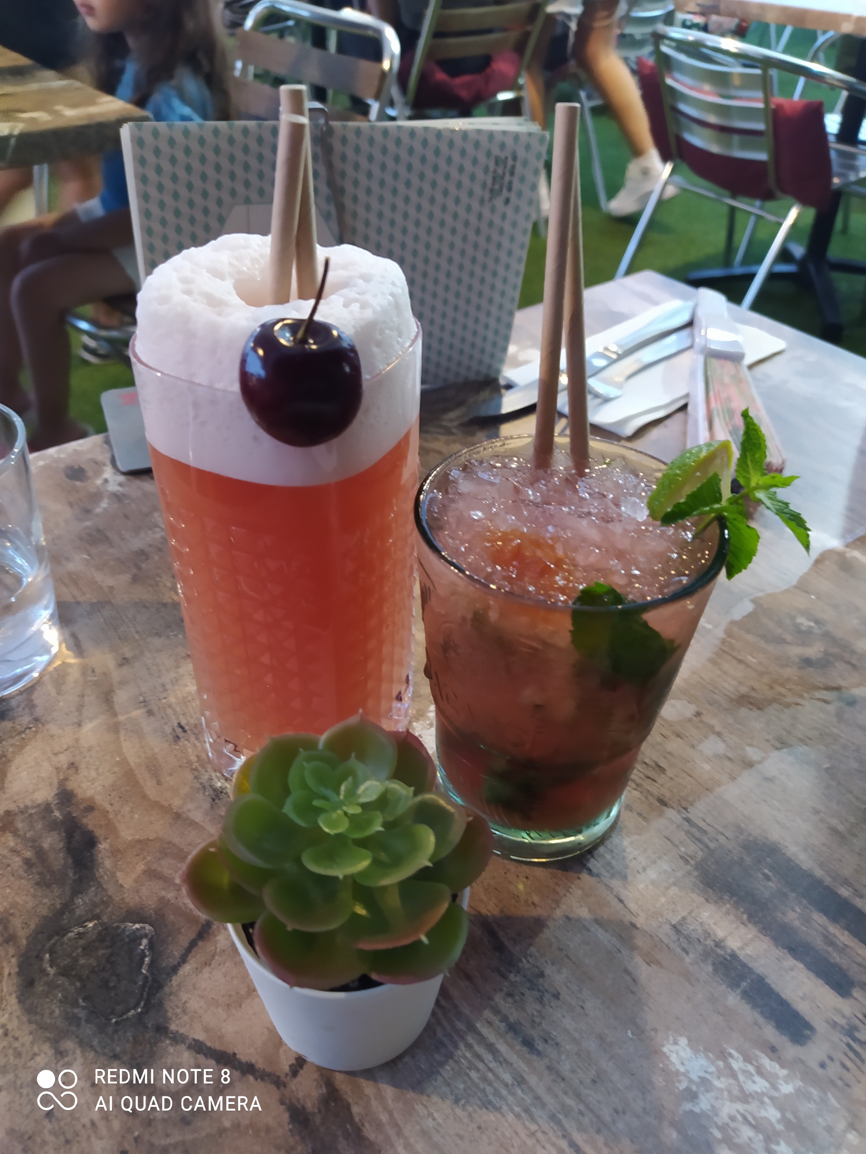 Service rapide mais mauvaise boisson au début et des personnes qui crient en terrasse.