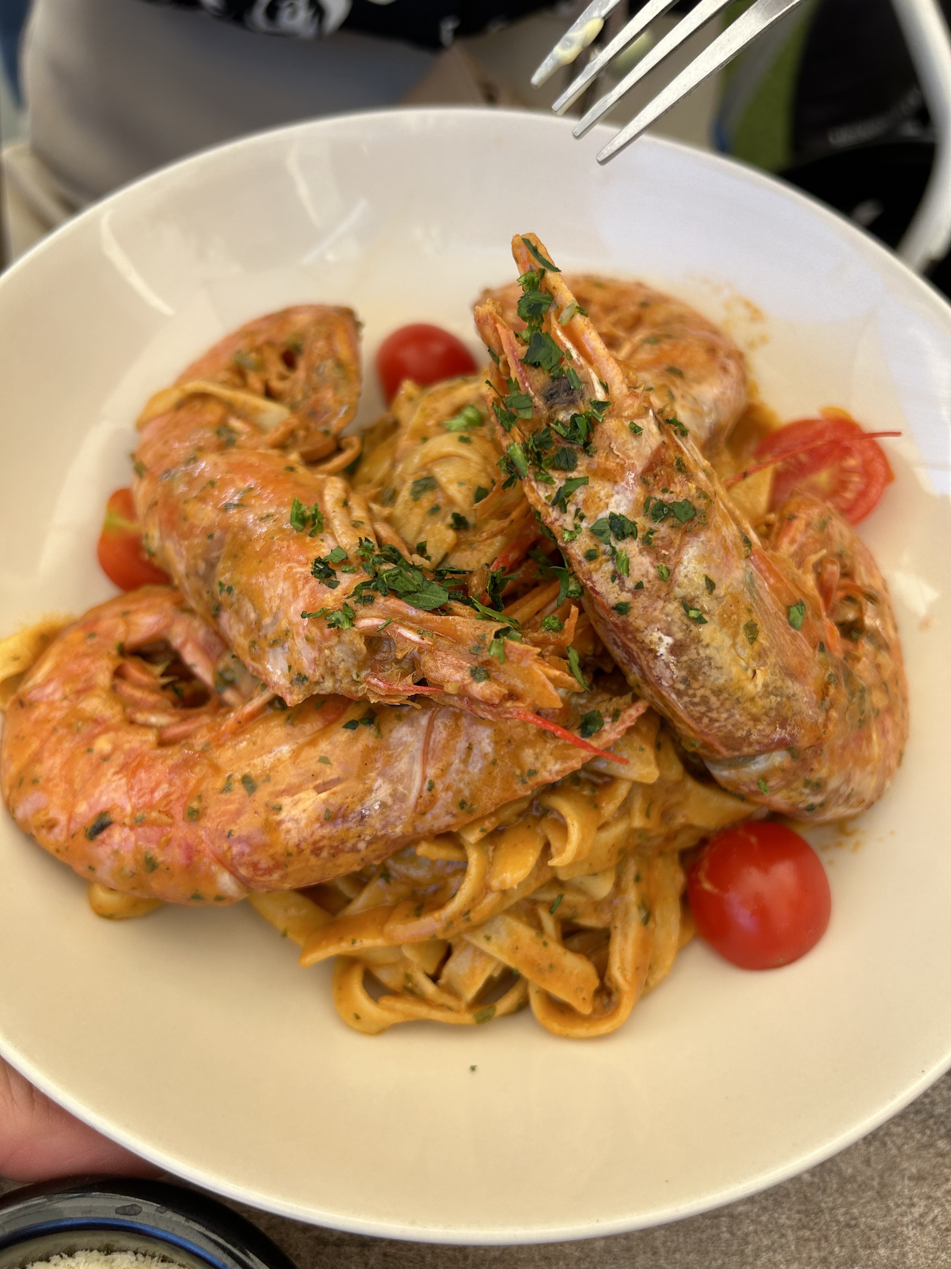 Excellent ! Serveuses très agréables, repas copieux et un régal ! J’ai pris des gambas : c’était des vraies ! Énormes (voir photo)
