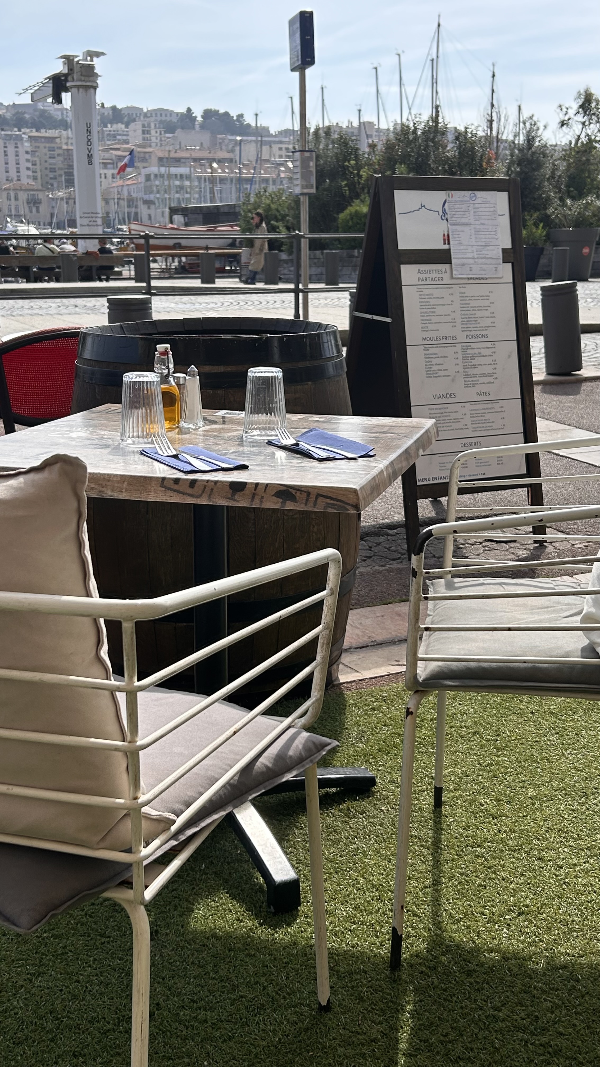 Terrasse très agréable sur le vieux port. Service vraiment agréable et ultra rapide (merci encore!). Les moules étaient impec, mon fils etait ravi. Je recommande++