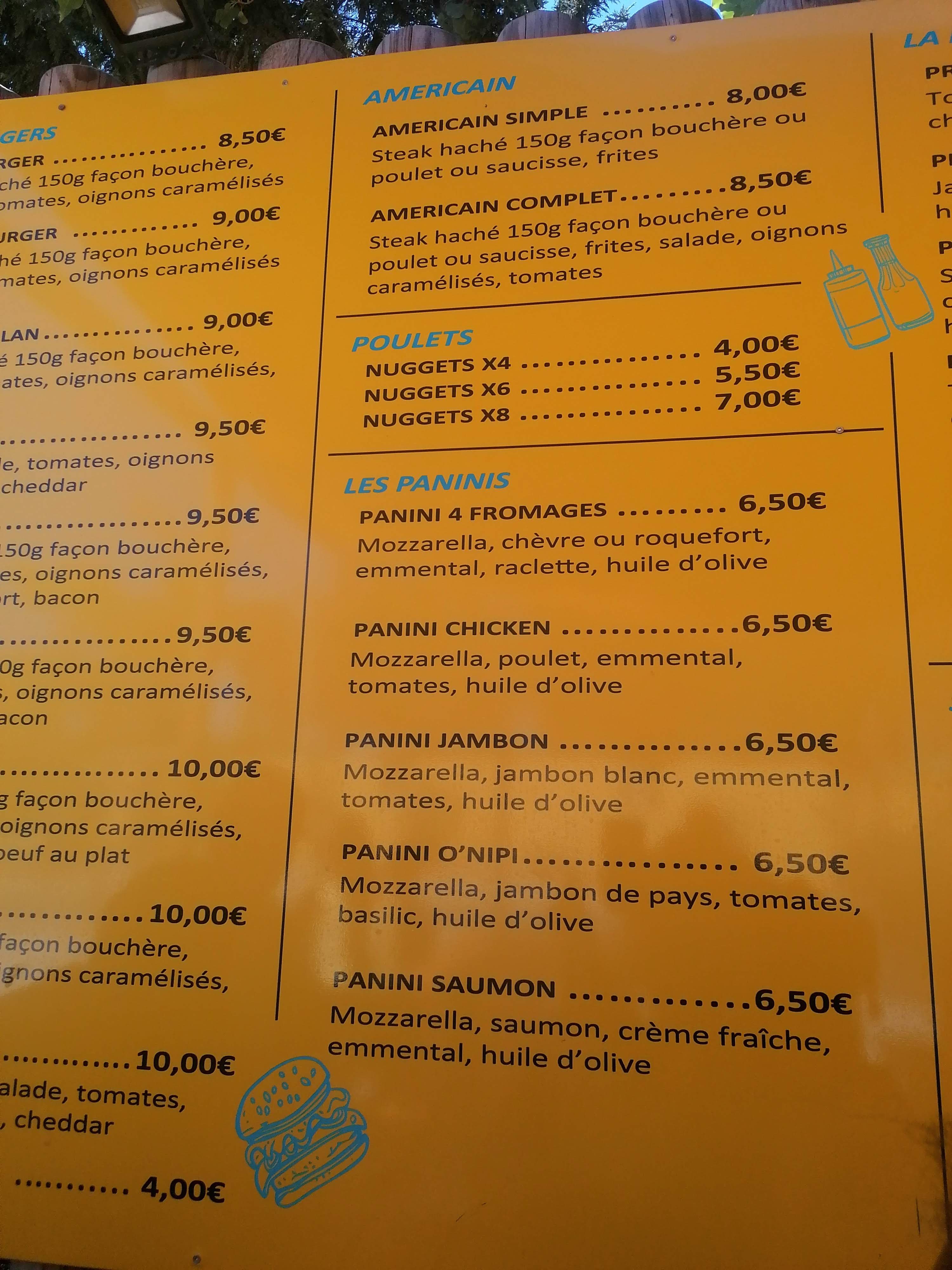 Manger 2 fois pendant mes vacances Burger délicieux, panini 4 fromage roquefort super et que dire des américains sublimissime !! En plus super personnel super accueil je reviendrais c'est sûr