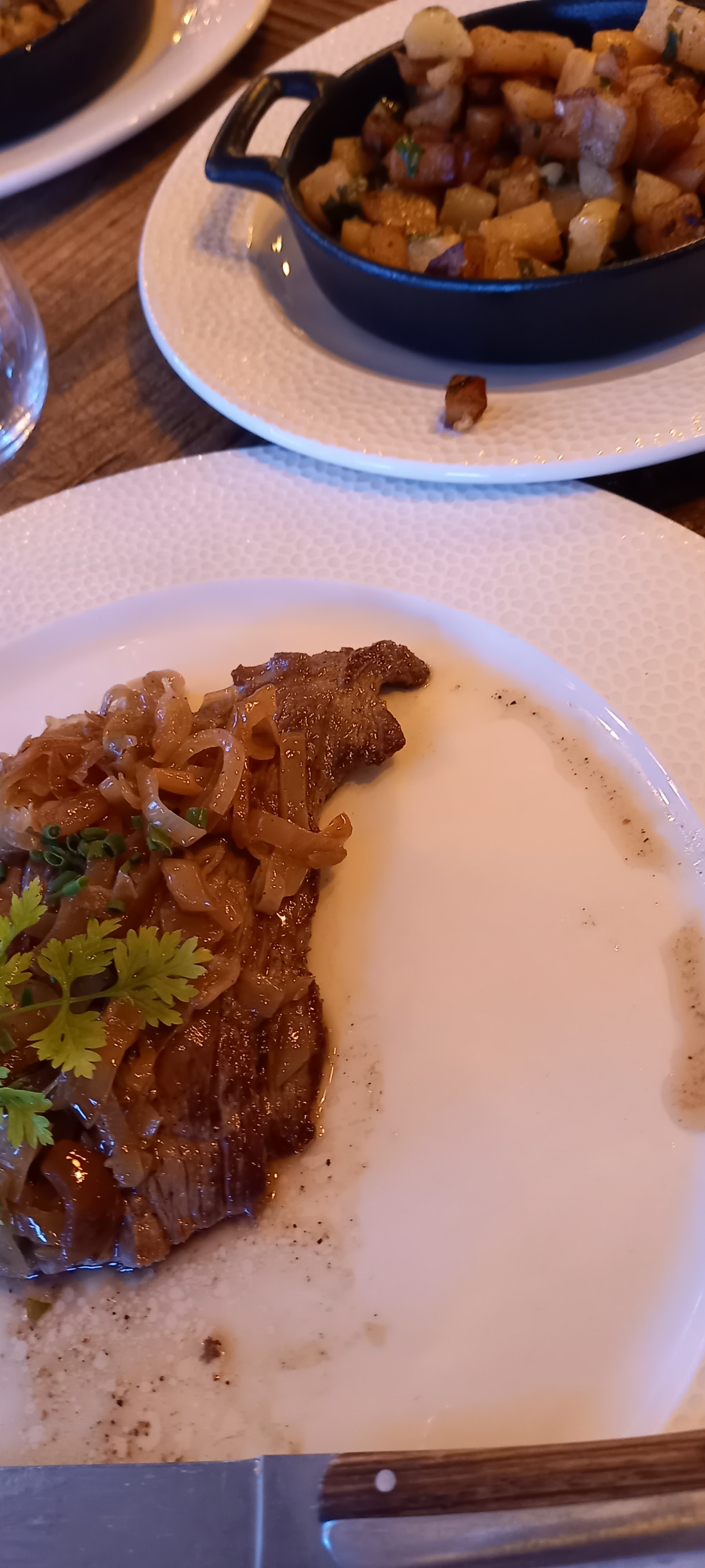 Délicieux. Le foie gras fait maison était exceptionnel. La bavette avec pommes de terre rissolées, super tendre. Le tiramisu super bon aussi. Service rapide et sympa. J'y enverrai mes clients.