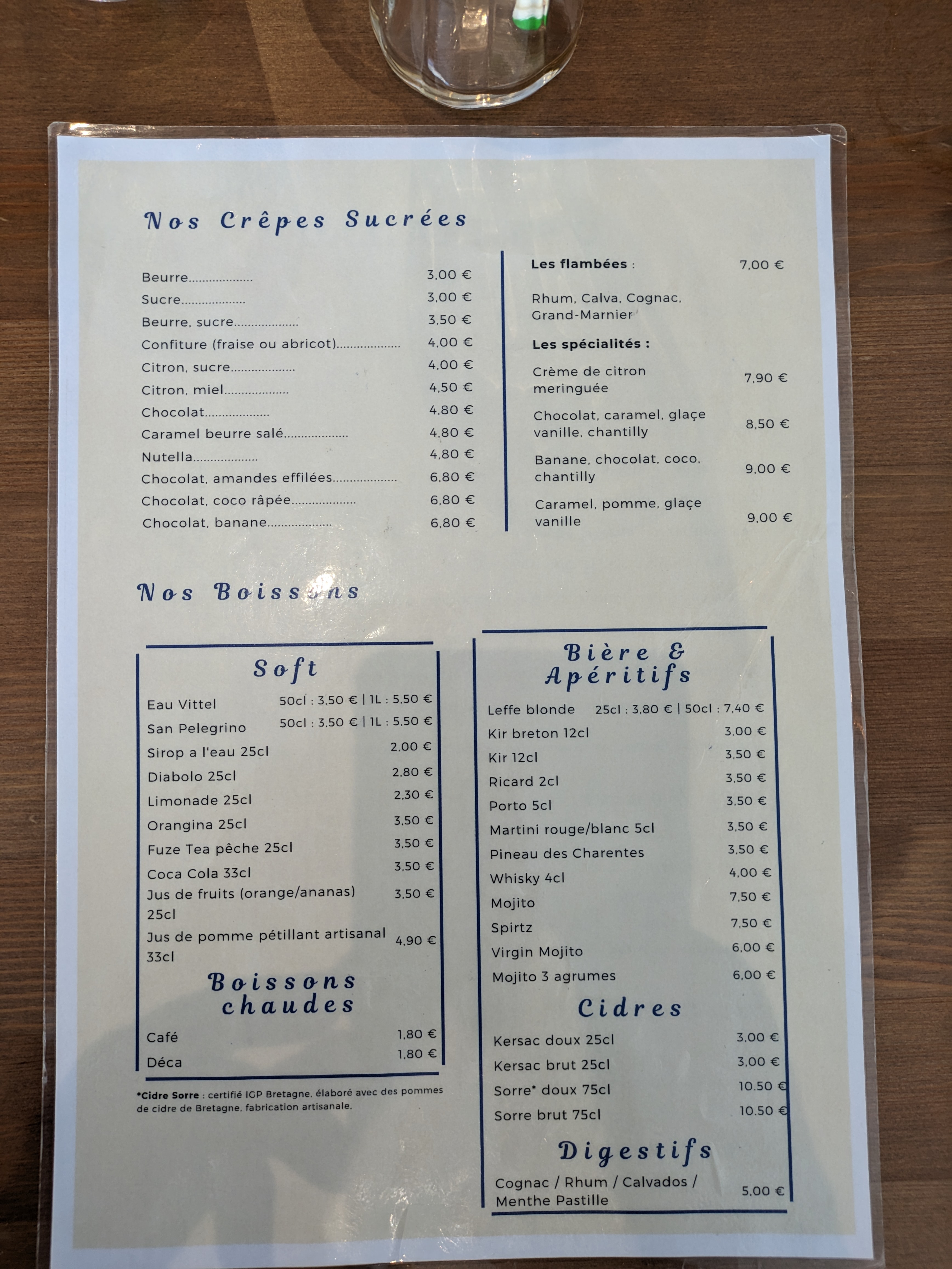 Superbe crêperie dans un cadre chaleureux, une équipe très souriante et acceuillante, je recommande la galette au curé nantais !!!
