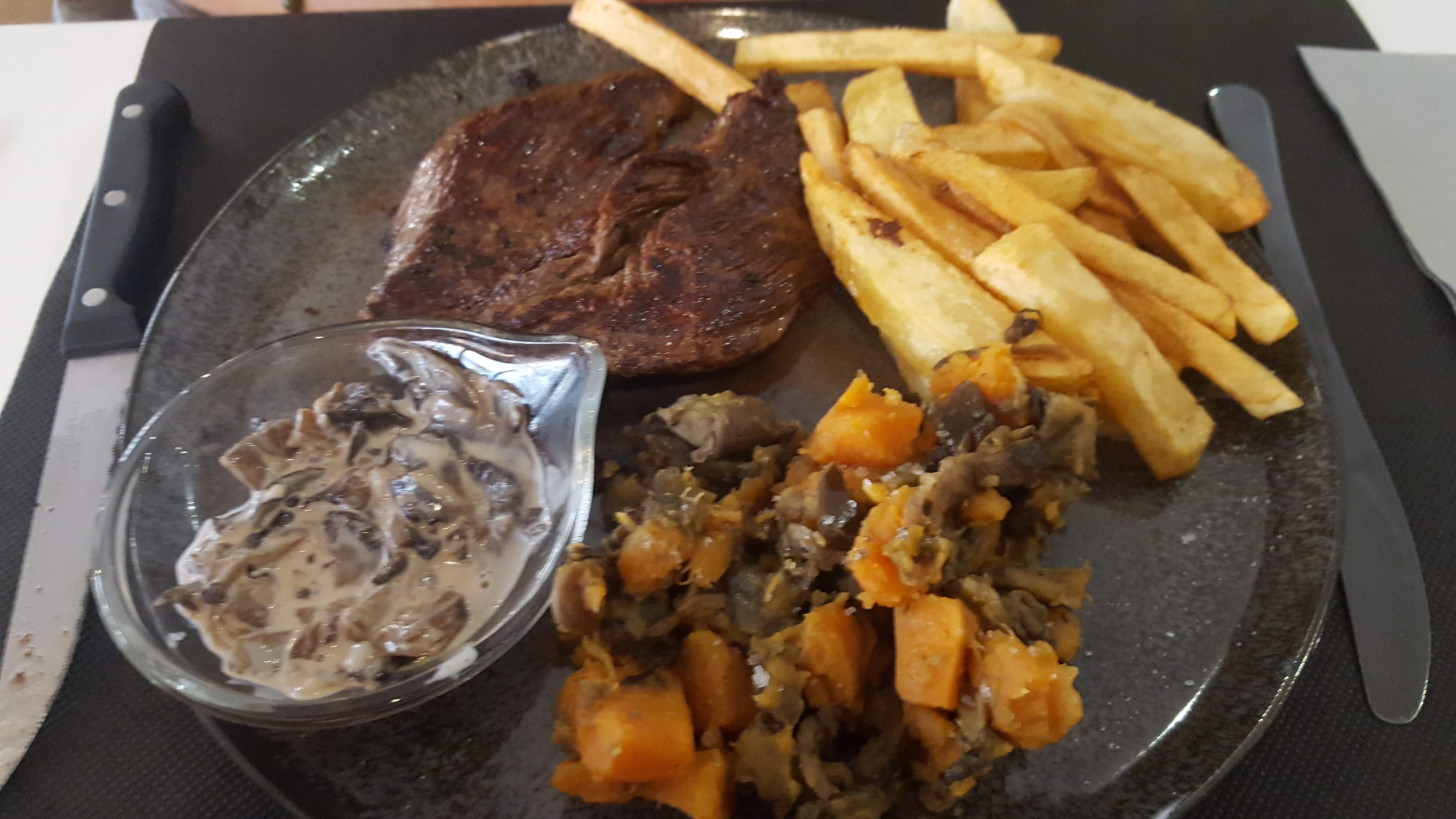 Testé par 2 fois .la 1er quelques semaines après l ouverture et la 2 eme il y a 1 semaine .A savoir bavette les 2 fois , cuisson demandée bleue ! Donc viande saisie aller et retour (normalement) cuisson non respectée les 2 fois , viande non saisie et trop cuite (servie appoint)à 19.90. € ça n est pas tolérable, la sonnette du micro onde en permanence retenti de la cuisine . C est très dommage ! Certes le cadre est chaleureux et accueillant (heureusement)