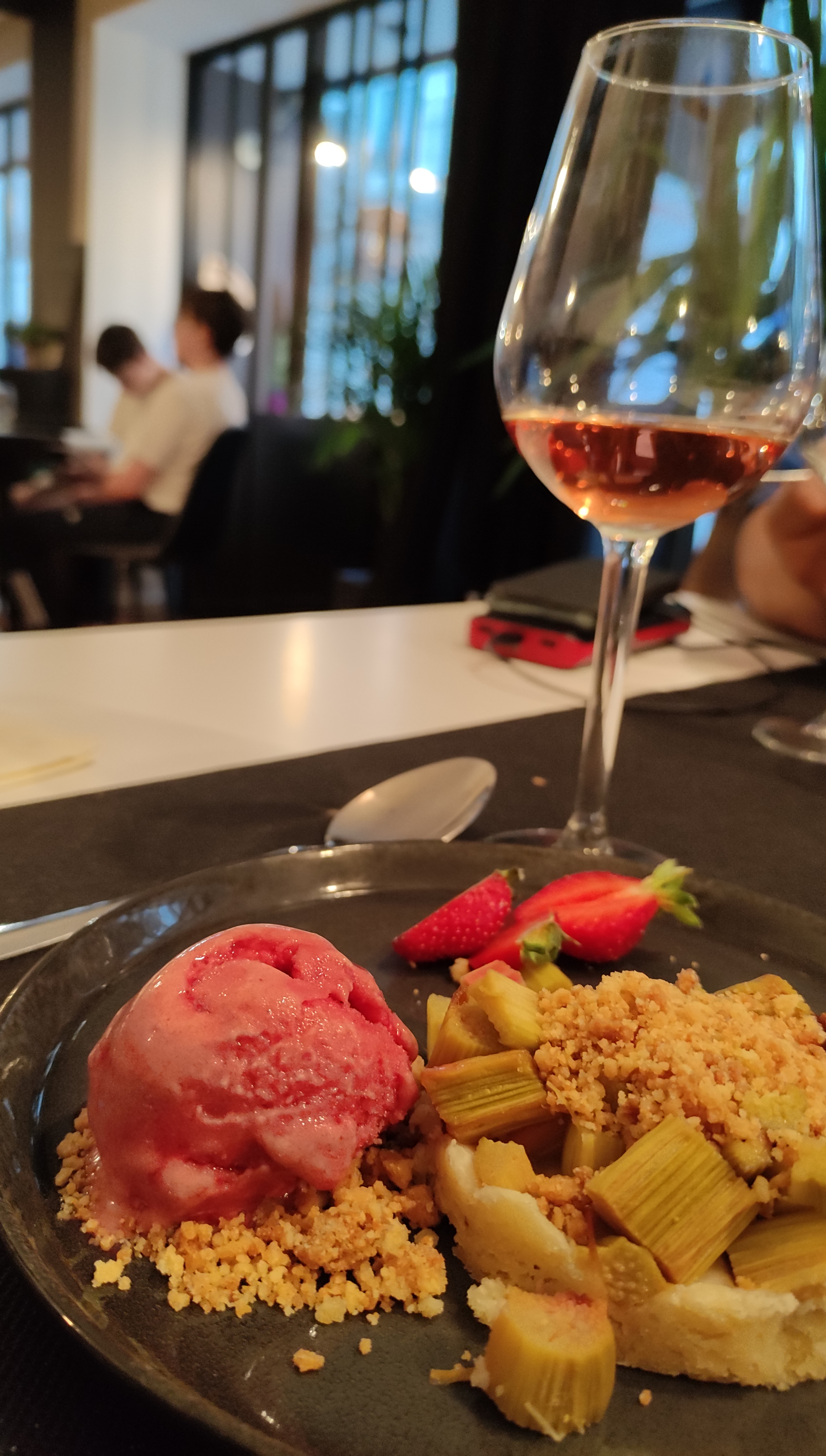 Charmant, distingué mais pas coincé, simple et à la fois raffiné et teinté d'une certaine complexité Et pour accompagner de très bons plats un desserts qui un de ces goûts de r'viens y (un nougat glacé succulent) !! 😋 Même avec Monsieur en béquilles on ne regrette pas 😉