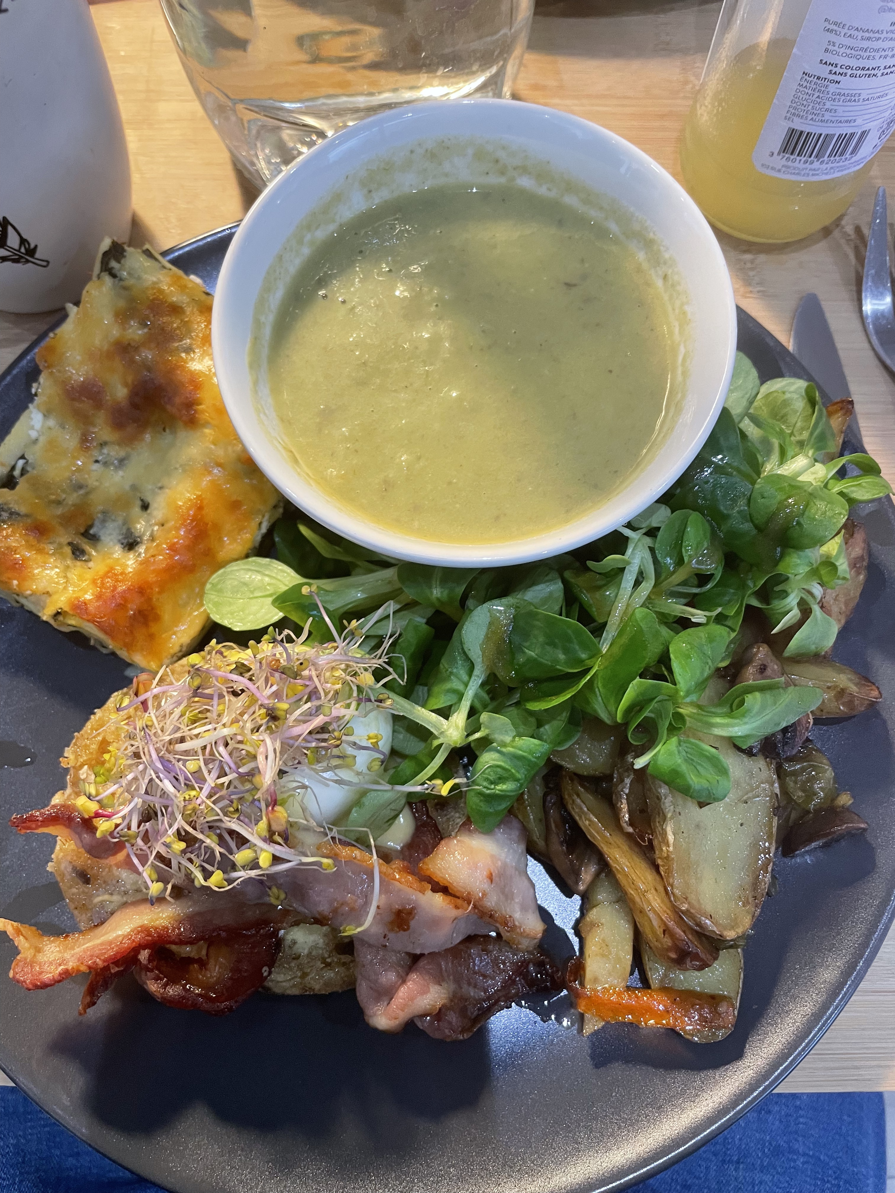 Génialement bon Une soupe !!! Miam miam Tout tout bon et accueil vraiment sympa Forte reco