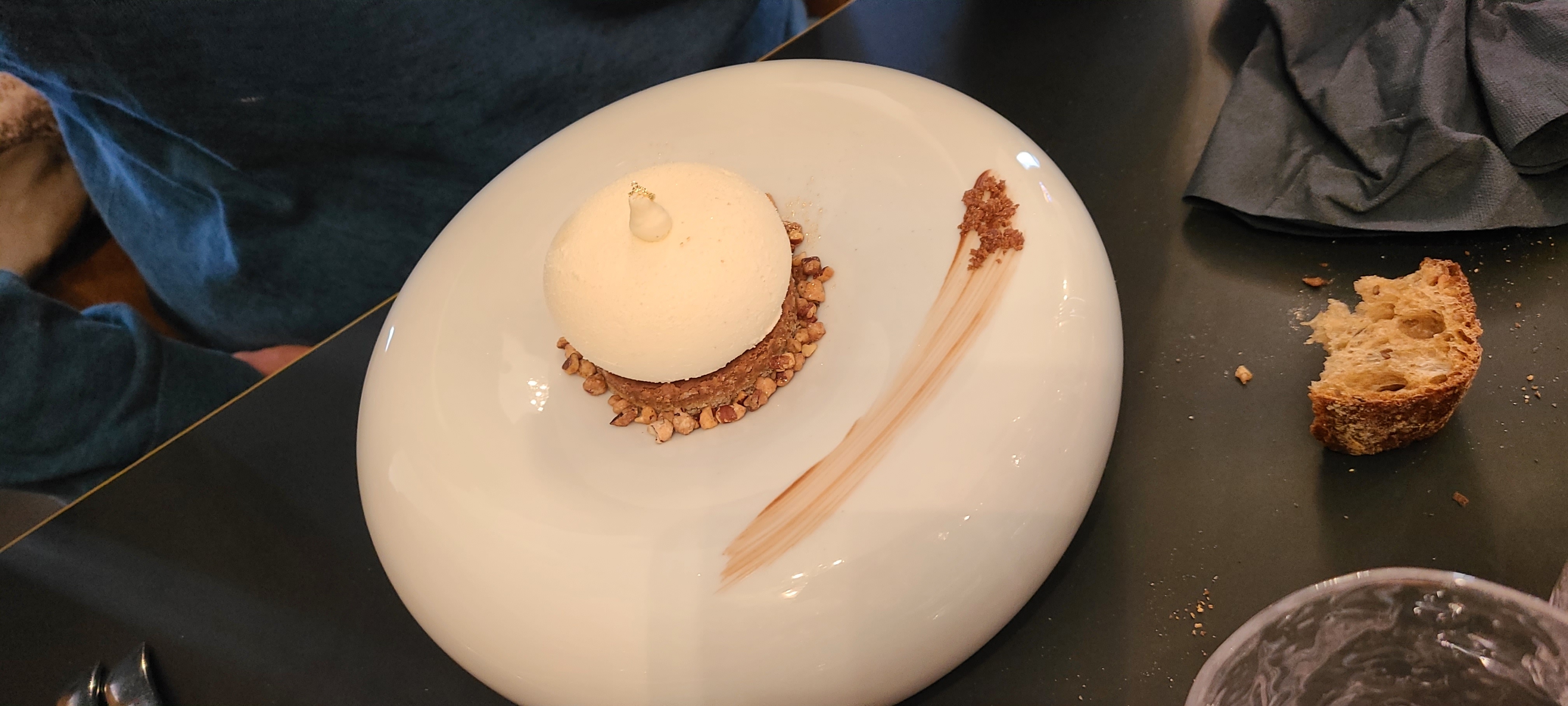 Nous sommes allés déjeuner un mardi midi, repas pris à la carte avec des collègues de travail. Ce fût délicieux, présentation soignée, cuisine inventive et fine avec un bel equilibre ! Seul bémol, le bruit dans la salle, nous avions du mal à nous entendre entre collègues et la lenteur du service où les 2 serveurs étaient débordés, les pauvres. Sans doute le revers d’être victime du succès. Nous reviendrons tester une autre fois