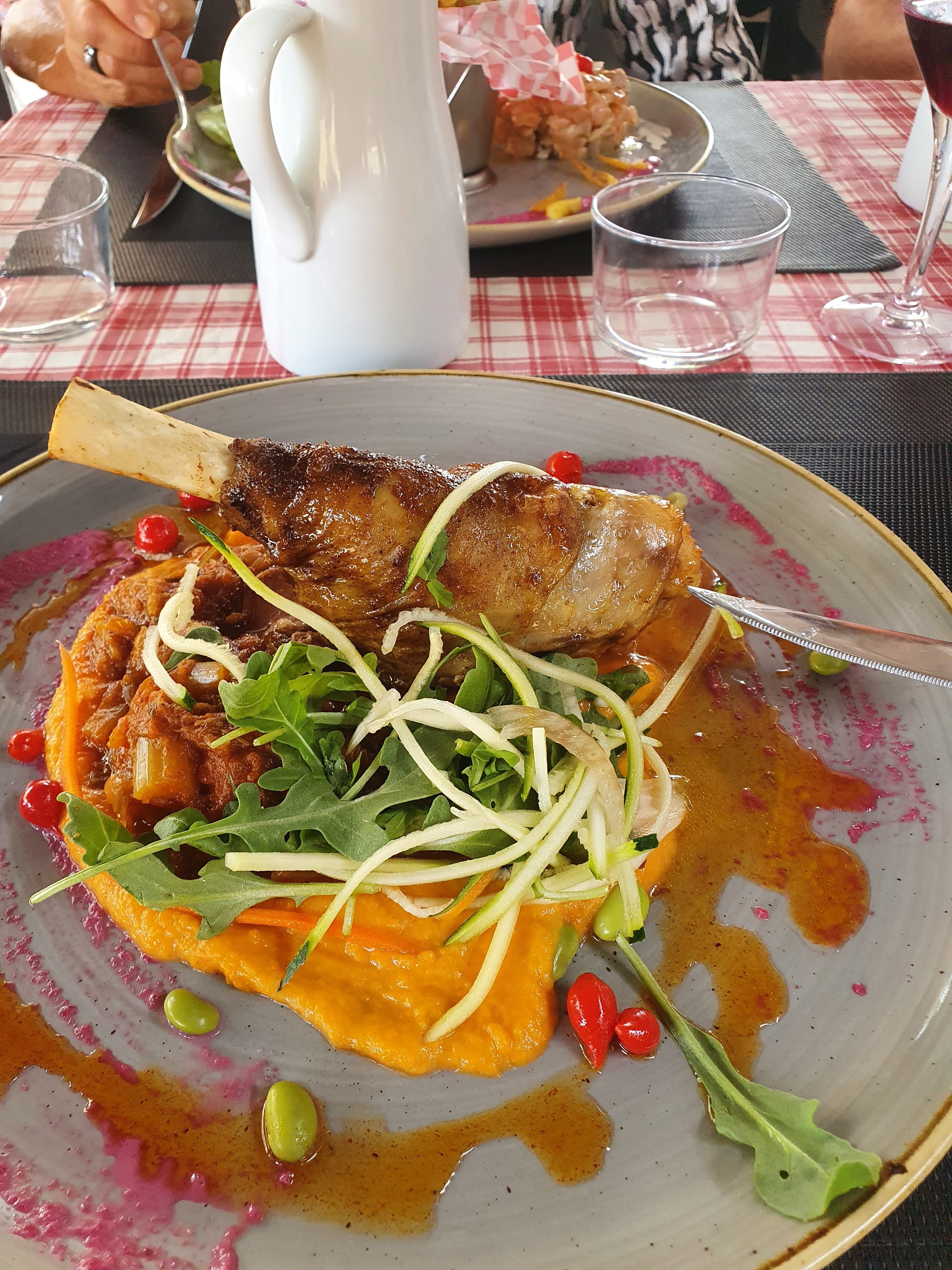Déjeuner paisible sous une pergola. J'ai pris le menu du jour A refaire