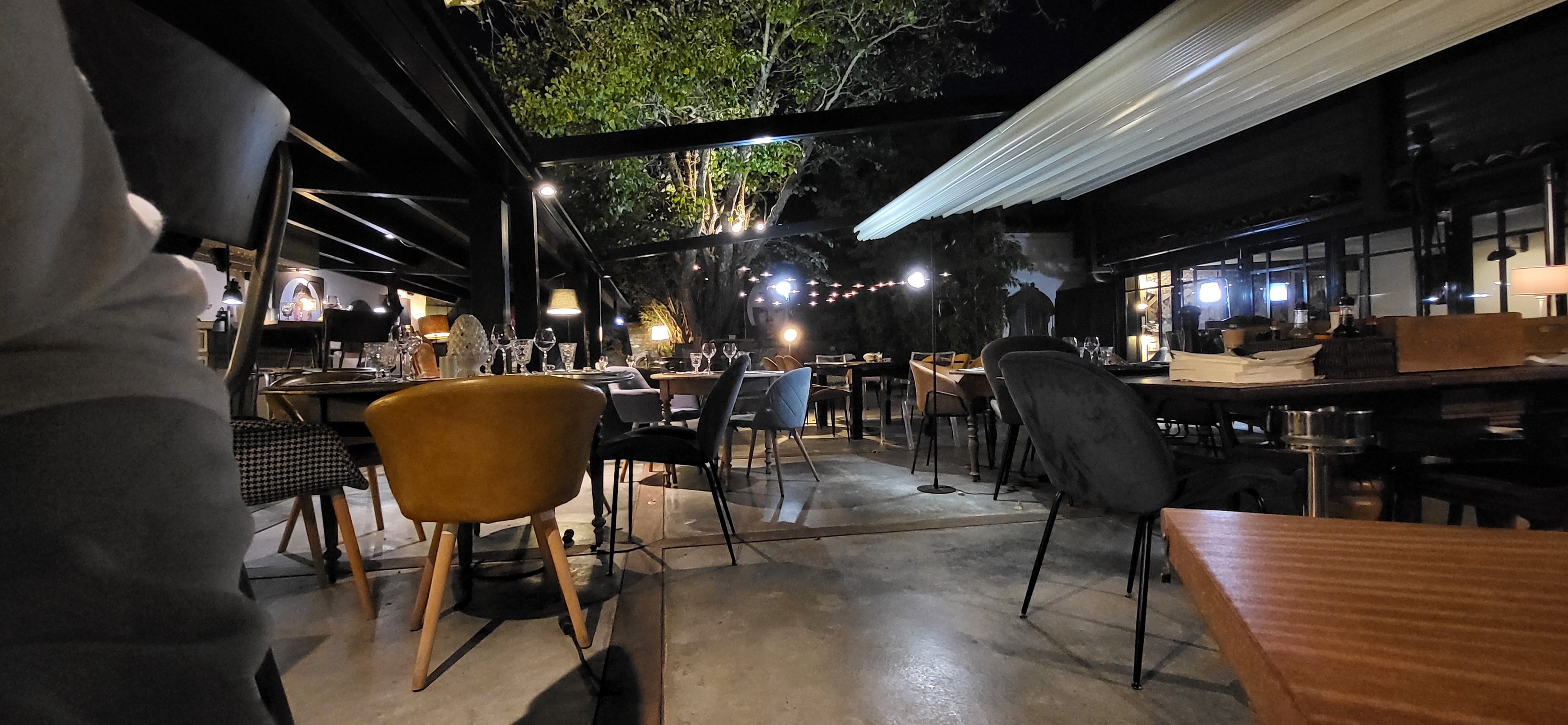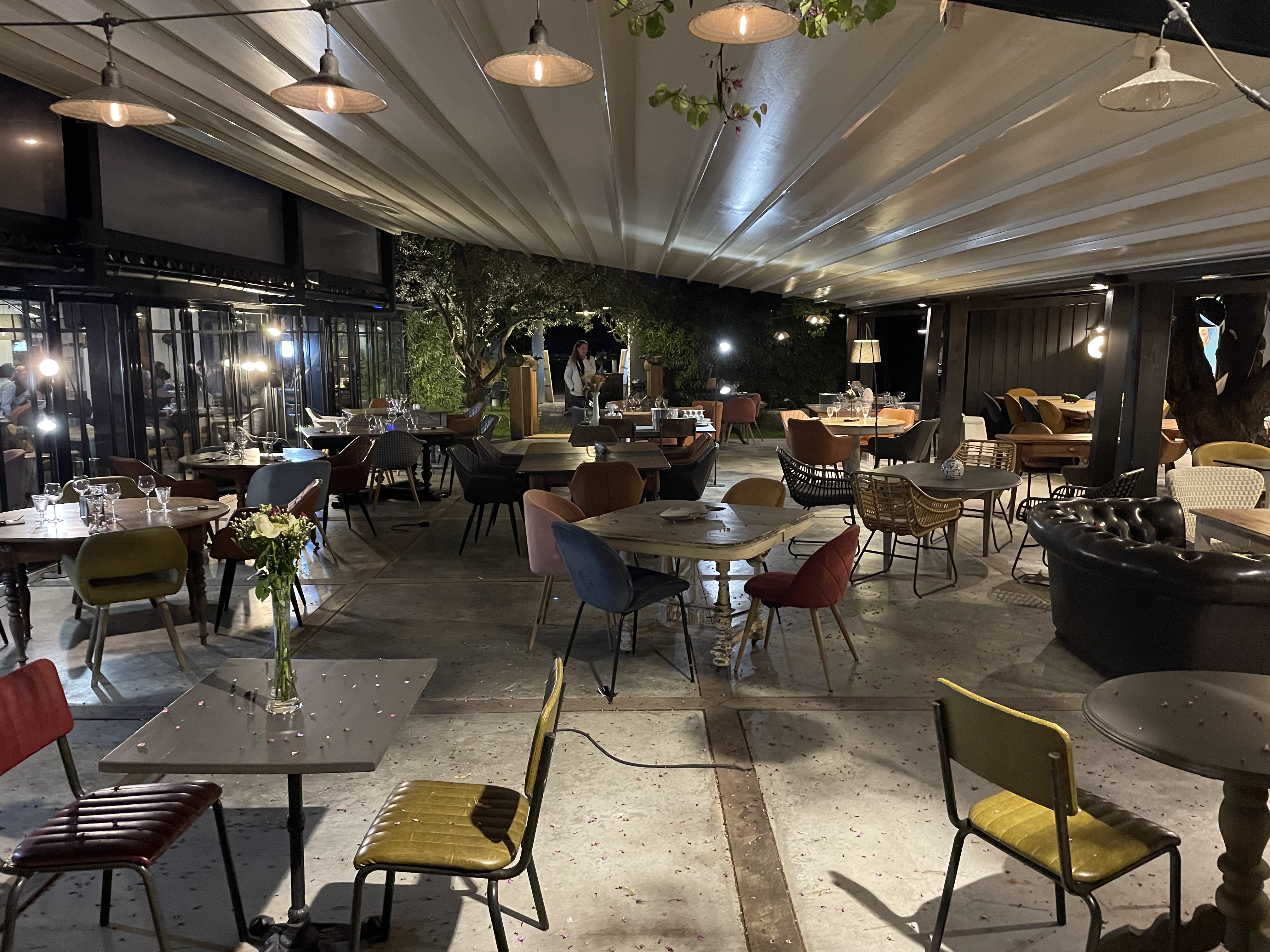 Excellent à tous niveaux. A deux pas du parking payant, un mur d'enceinte entoure ce havre de paix réconfortant tant par sa splendide déco-brocante sélective ainsi que son jardin intérieur qui rappelle les restos de Marrakech. Véranda, cour intérieure, tables basses, et hautes, différents types de chaises, coins feutrés et le soir illumination de rêve contribuent à donner un caractère unique et mettant en valeur les tableaux et oeuvres d'art. Nous avons passé des heures à table, en bonne compagnie, dans une ambiance de communication et de partage, facile par le concept du lieu et la bienveillance du personnel et du patron, très aimable et diplomate de surcroît. Champagne (Roederer abordable à 95 euros), vins sélectionnés, huitres, bar, barbue et seiche parfaitement préparés et présentés, le tout avec ambiance musicale parfaitement ordonnée pour le lieu. Bref une escapade gourmande dans un bel endroit bien tenu, avec tous les plaisirs du palais, du goût et des yeux réunis. Merci à toute l'équipe pour cette belle soirée 😊