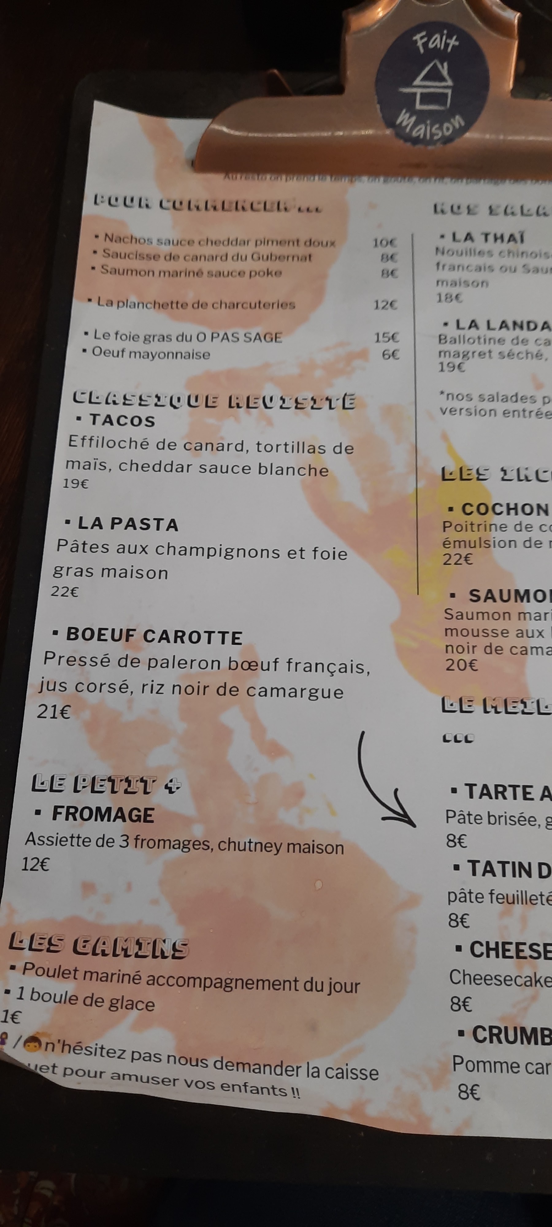 Que du fait maison !! C’est toujours un grand plaisir que de venir manger O pas sage ! Mention spéciale à Margot, Baptiste, Robin et Modjo !