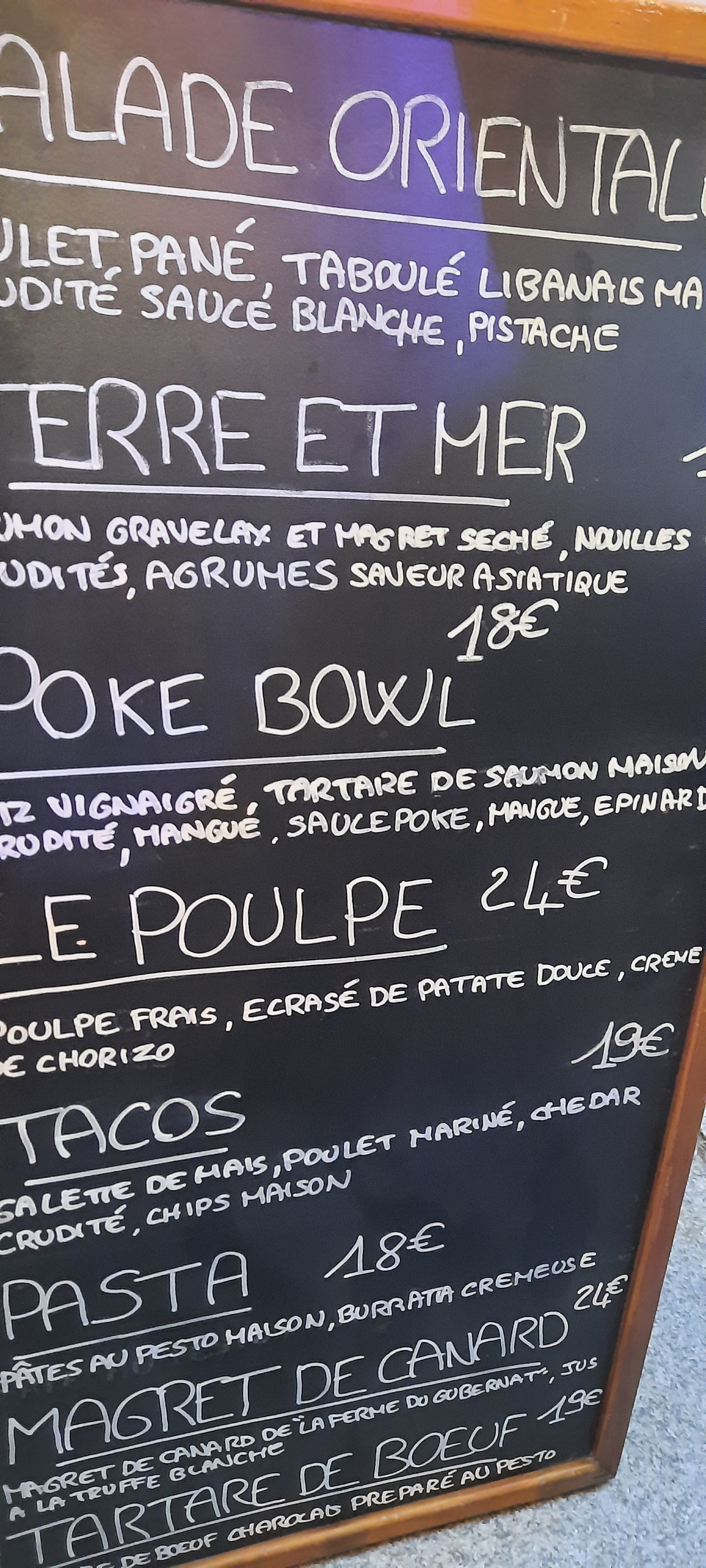 Adorable restaurant situé place de la mairie. La cuisine est juste excellente, les produits sont tous de première qualité et le service impeccable.Ce soir,le poulpe grillé sauce au chorizo est un véritable délice et le poke bowl saumon, un régal pour les papilles.Nous sommes en pleine été, le menu est adéquat. Tout est fait maison et ça se sent. Un véritable merci pour ce bon moment, on reviendra avec plaisir. (De retour, ce soir de fin février ) En salle , l'ambiance est différente, toujours très chaleureuse,en hiver c'est un petit cocon. On se sent bien. Délice pour les papilles ce soir avec un loup grillé, carottes et patate douce : une pure merveille, cuisson magnifique, pleins de goût, on en n'a pas laissé une miette. Les desserts sont très réussis aussi. A noter pour les amateurs de bons vins, une cave très bien fournie et de belles découvertes . Merci à l'équipe de nous régaler. A bientôt .