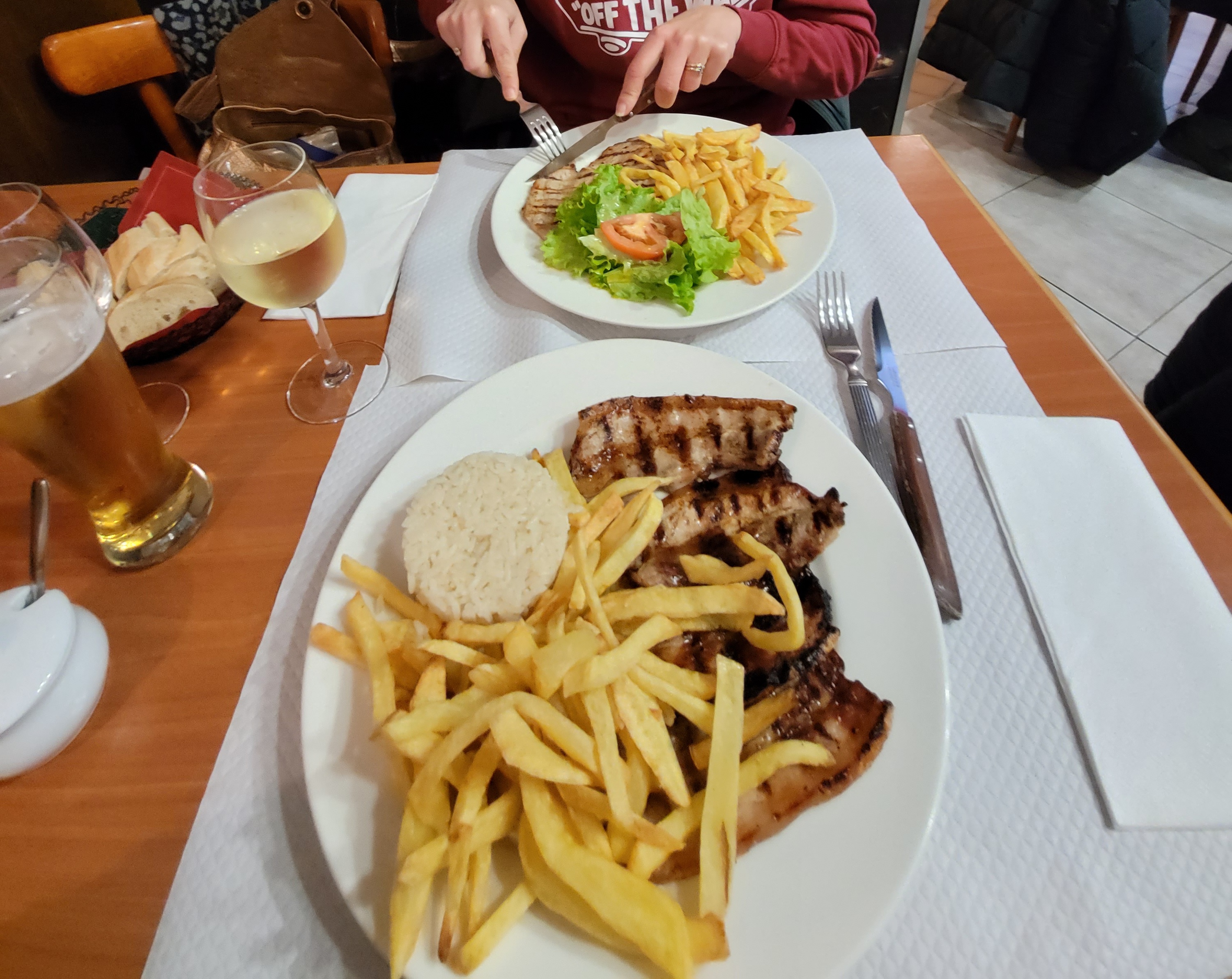 Cuisine simple et typique du Portugal. Goûtez le porc grillé, il est excellent. Bon appétit !!!