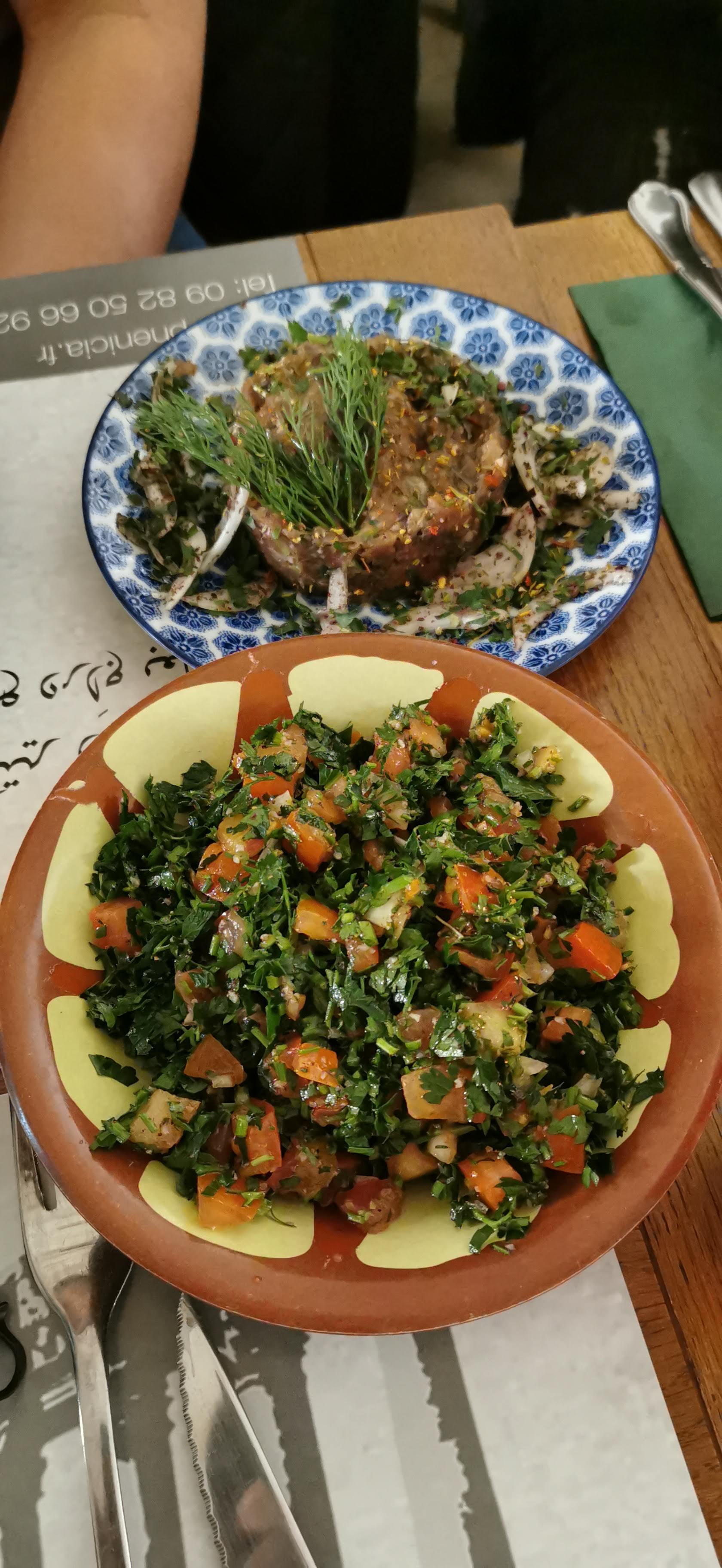 Meilleur taboulé vert que j’ai jamais mangé ! Kafta royal à essayer absolument. Tout était délicieux.