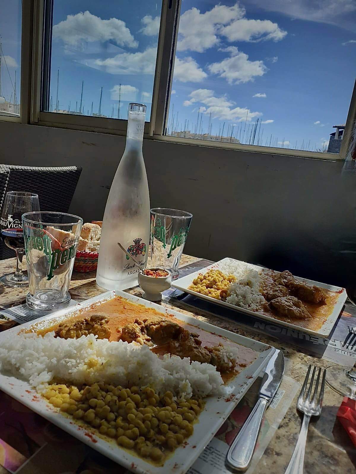 Cuisine réunionnaise plats très bons Endroit convivial et vue sur les bateaux