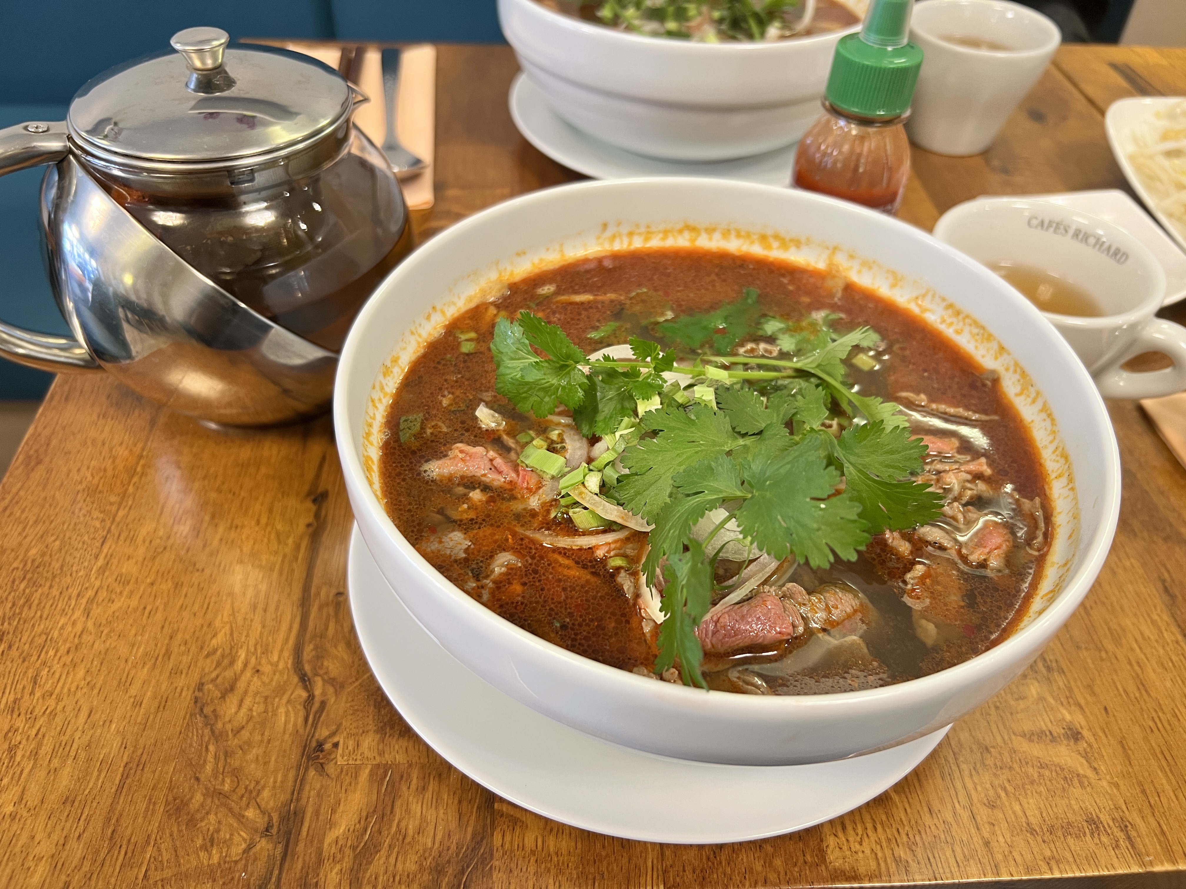Si bon !!! Bouillon clair et délicieux, les viandes étaient excellentes et dans une jolie rue calme :)