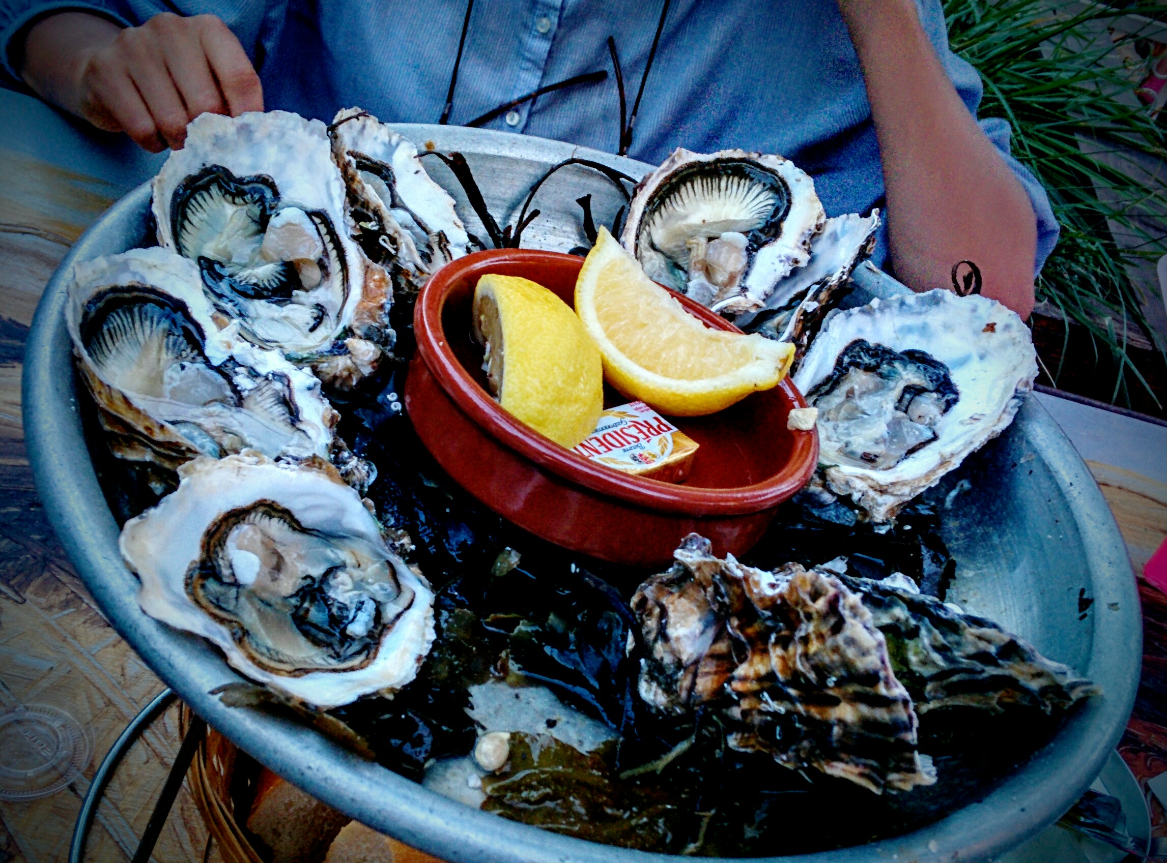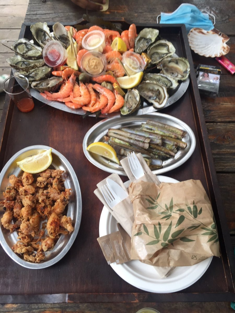 Coquillages en terrasse. Vin blanc pas assez frais. Accueil bon.