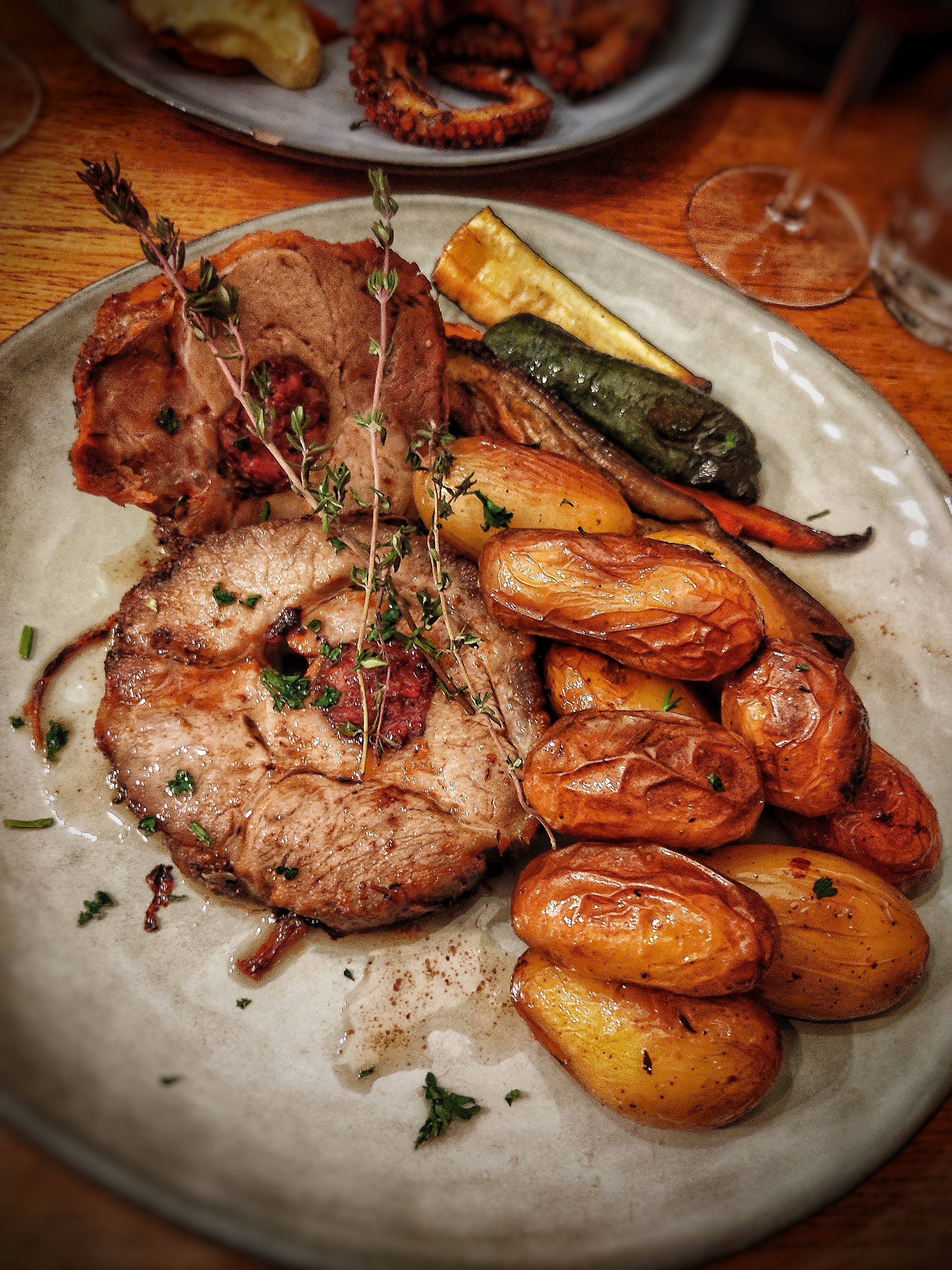 Très bonne expérience ! Nous avons pris la terrine que nous avons partagée à deux, puis le poulpe et le veau. Les assiettes sont très copieuses, et la cuisine très goûtue.