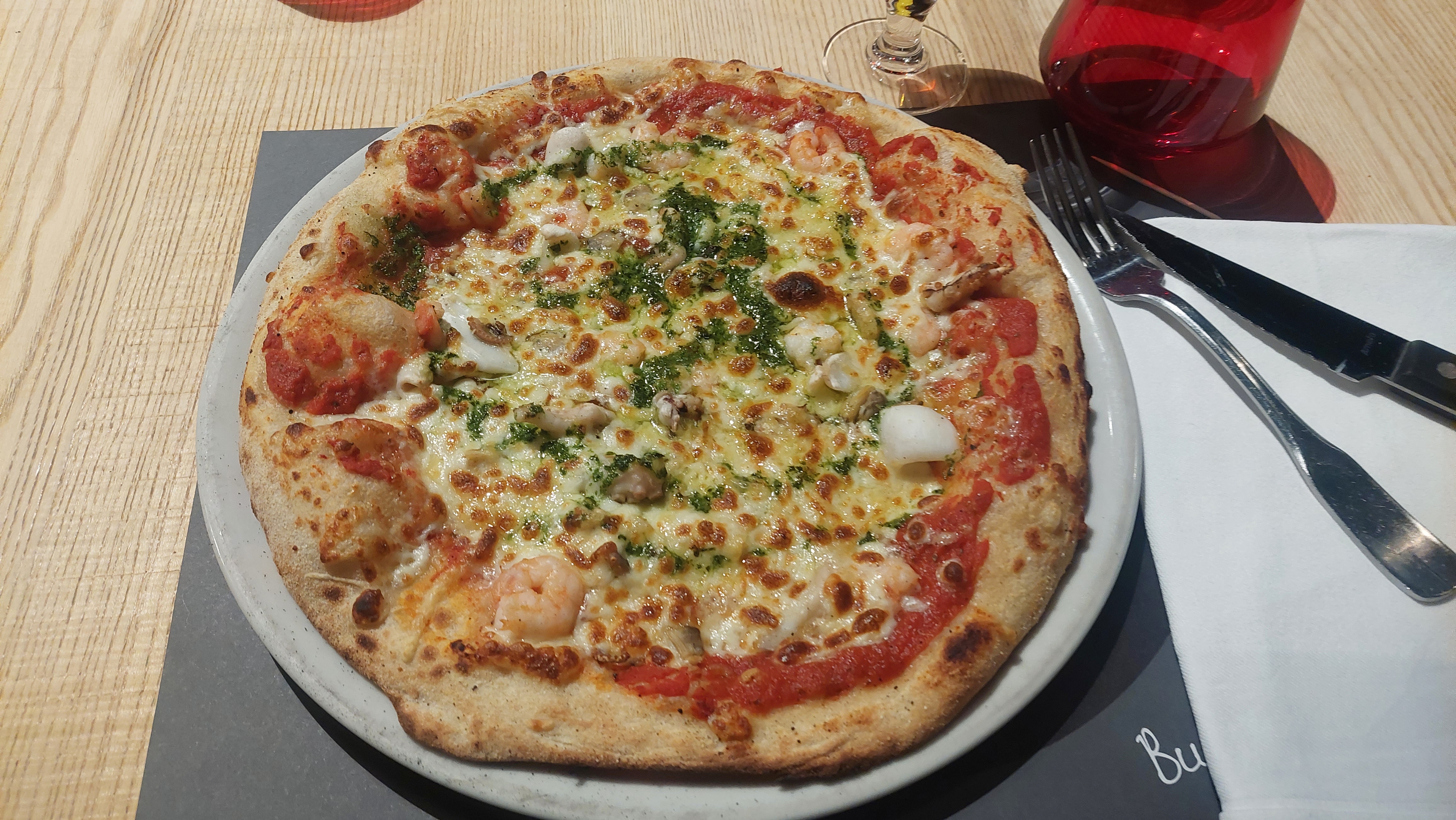 Ambiance très sympathique.. décoration très belle.. Cuisine :pizza excellente Tartare préparé devant moi savoureux et très belle assaisonné.. Personnel aux petits soins et très jovial.. Proposition de limancello déclinée car nous conduisions.. Je reviendrai.. Belle découverte..!