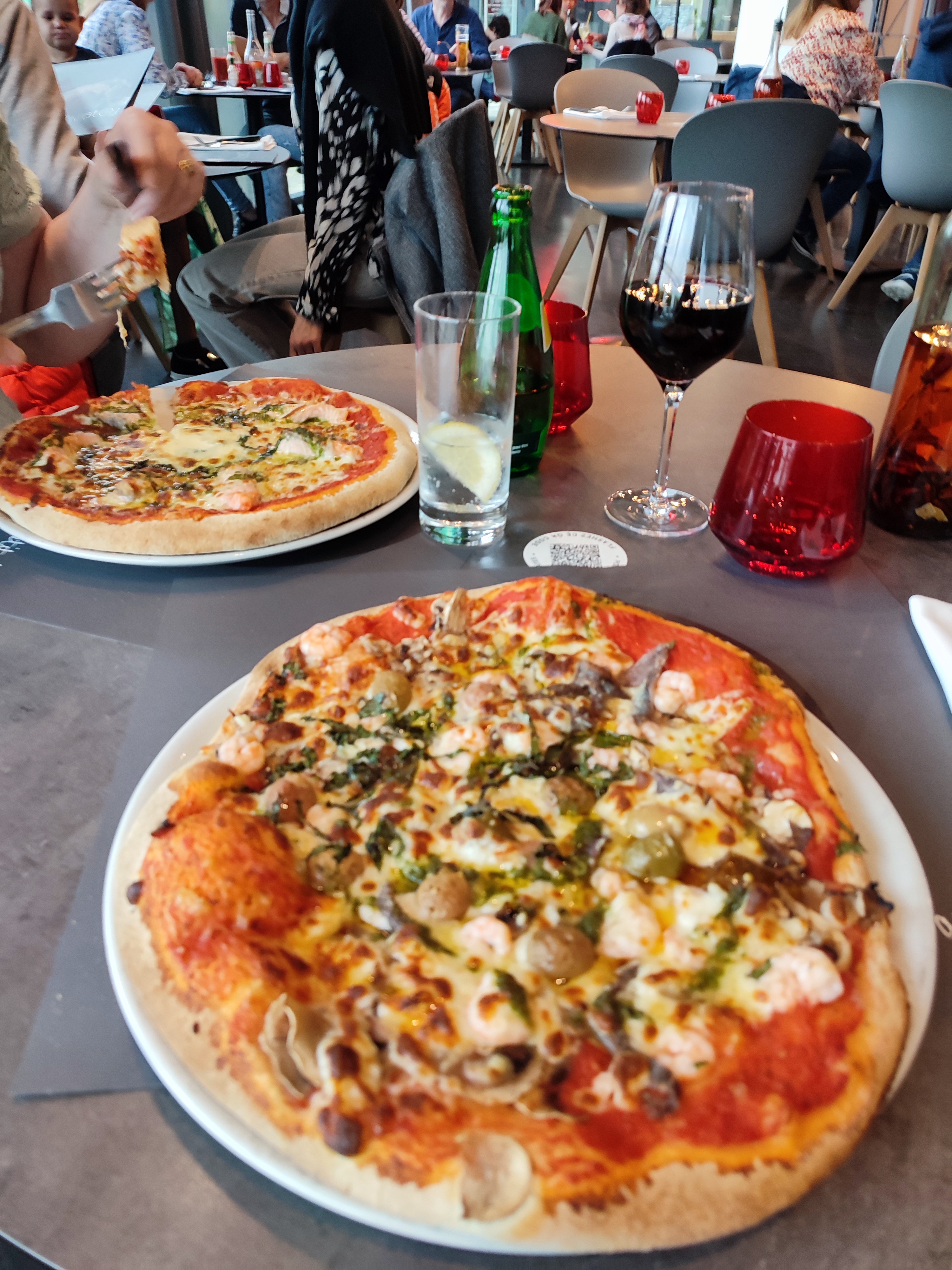 Excellentes pizzas, entre autre la pizza saumon et burrata pour laquelle j'ai demandé un supplément gorgonzola. Lors de la commande, nous avons laissé entendre que c'était l'anniversaire de notre petit fils et cela a été pris en compte lors du dessert avec bougies et chants d'une partie du service. Si j'avais une remarque ce serait le bruit (les salles étaient remplies)