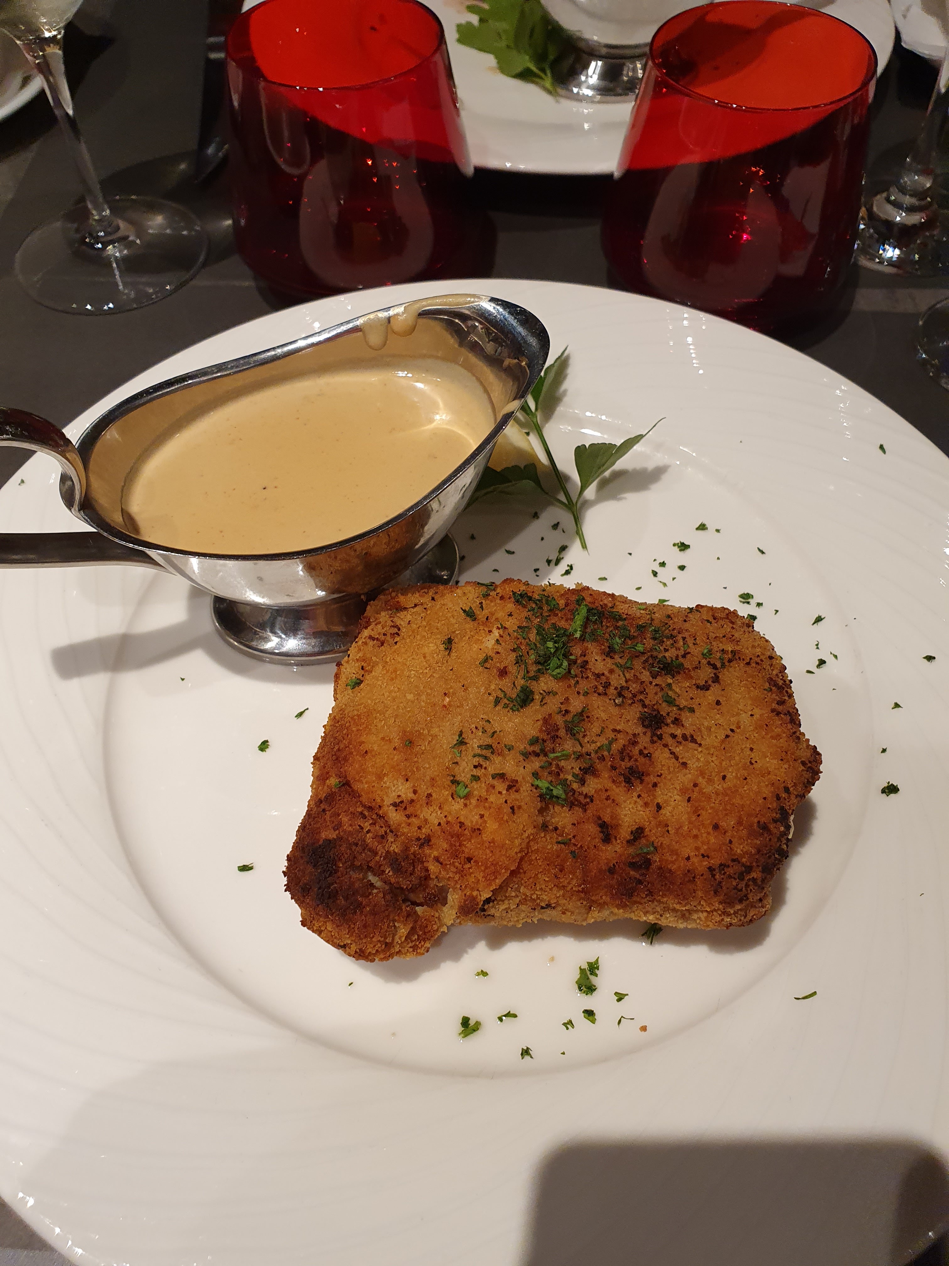 Très bon comme toujours avec juste un bémol sur la taille de mon escalope de veau qui était plus petite que d'habitude. Serveur moins sympathique qu'à l'accoutumée mais très professionnel malgré tout.