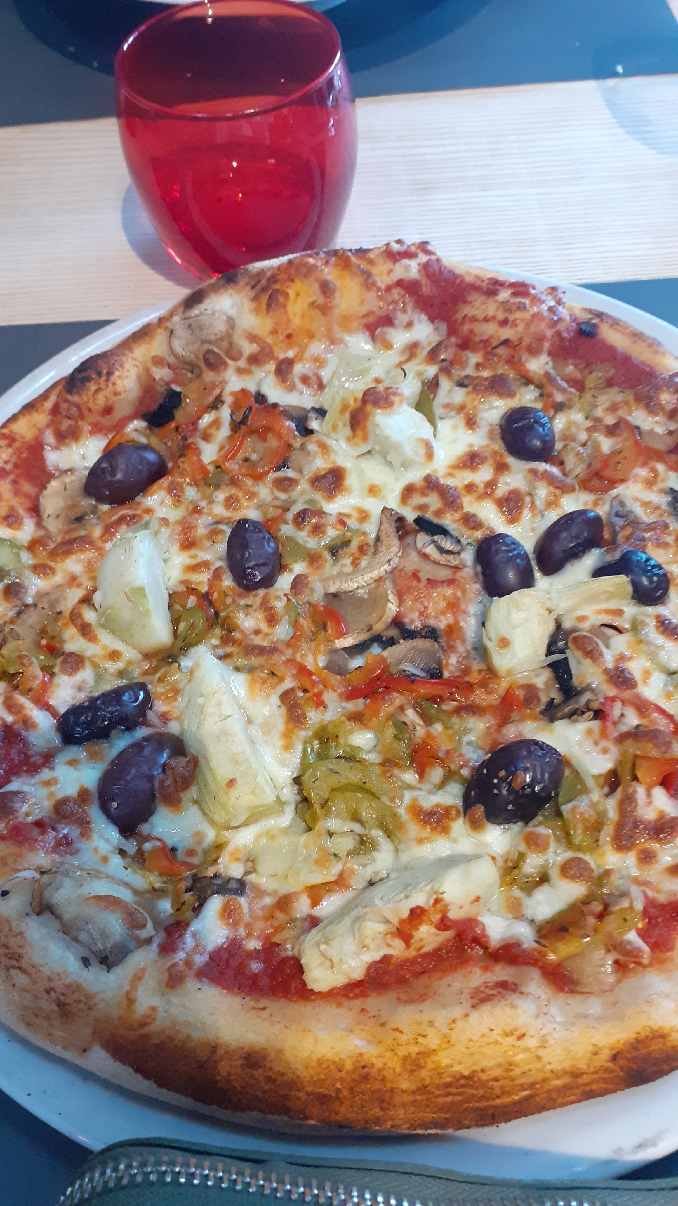 Pizza feu de bois et pâte très réussie,serveur très agréable,bel endroit
