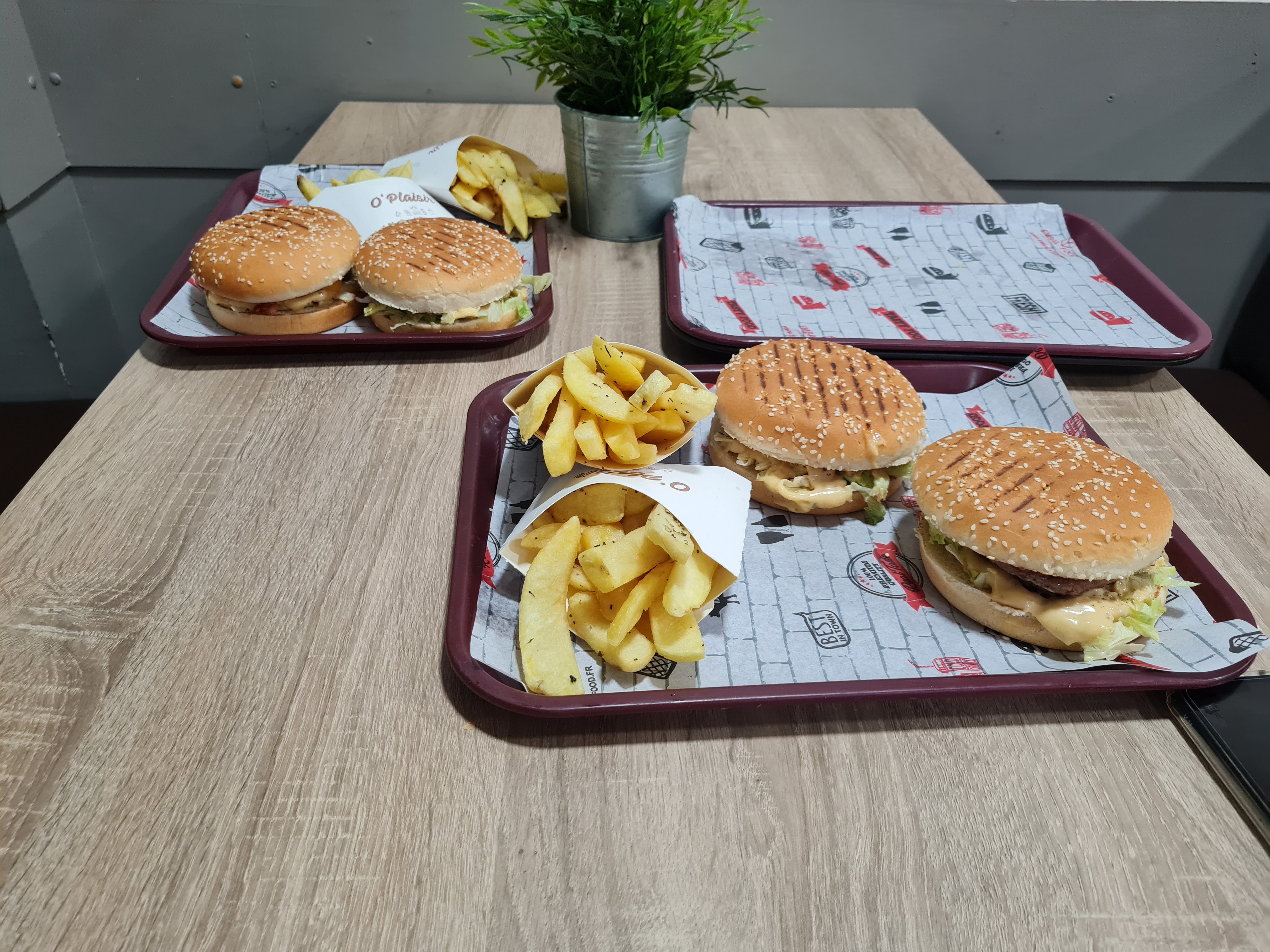 Je ne compte plus les fois où nous avons mangé ô plaisir... TOUT etait toujours très bon cependant en comparaison au debut il y a du laisser aller je trouve ... une fois on a eut du pain brulé ... une autre le pain carrement cru... une autre fois un.pain où il manquait un morceau et sec ect... alors je ne sais pas si cela dépend des jours... où du cuisinier mais cest dommage car leur hambugers et certaines de leur pizza sont les meilleurs que j'ai pu goûter sur marseille...