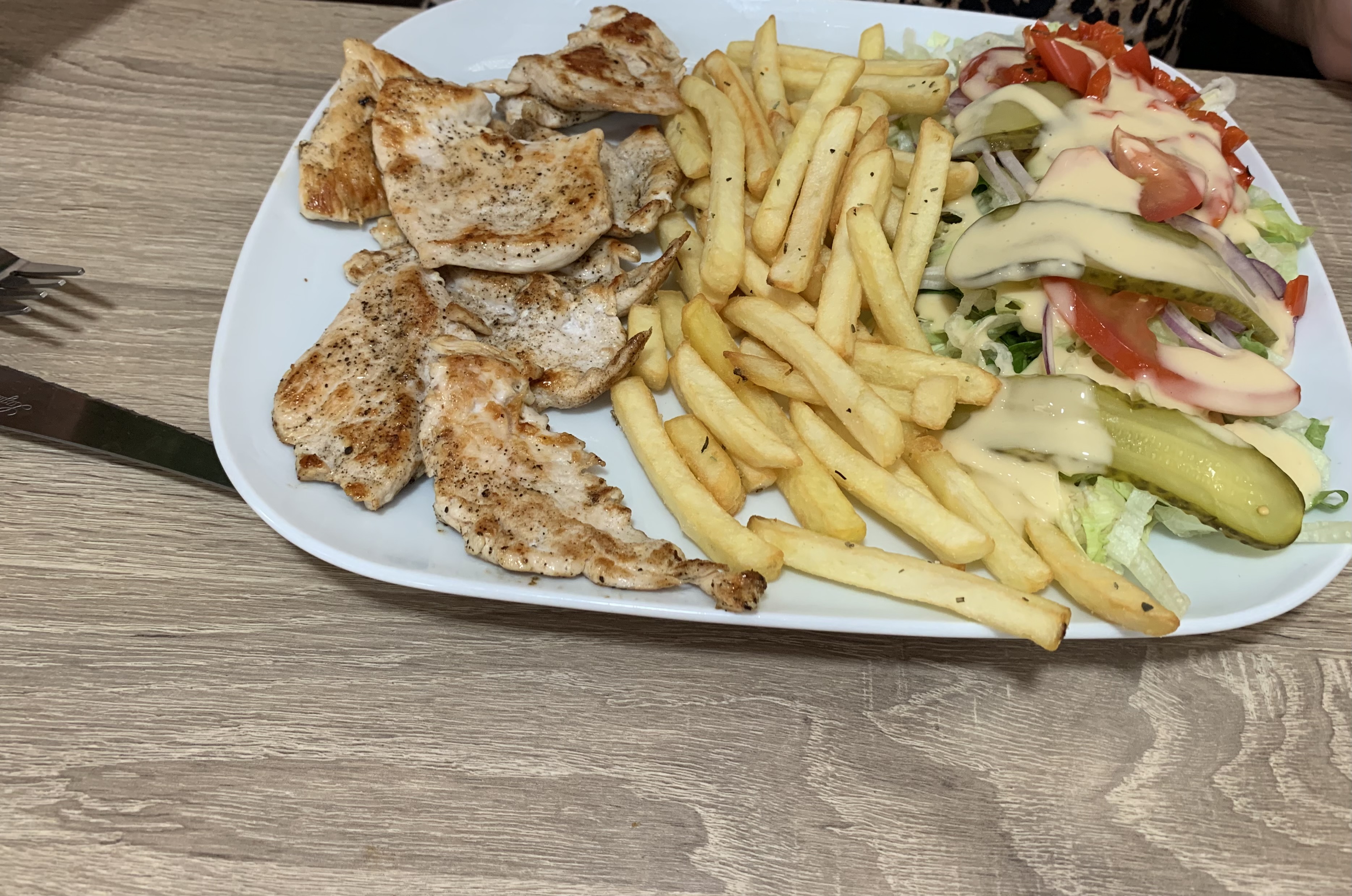 Le seul truc bien c l'eau gratuit, service bien,cuisine bien une bonne rapidité du service je met 4 🌟.