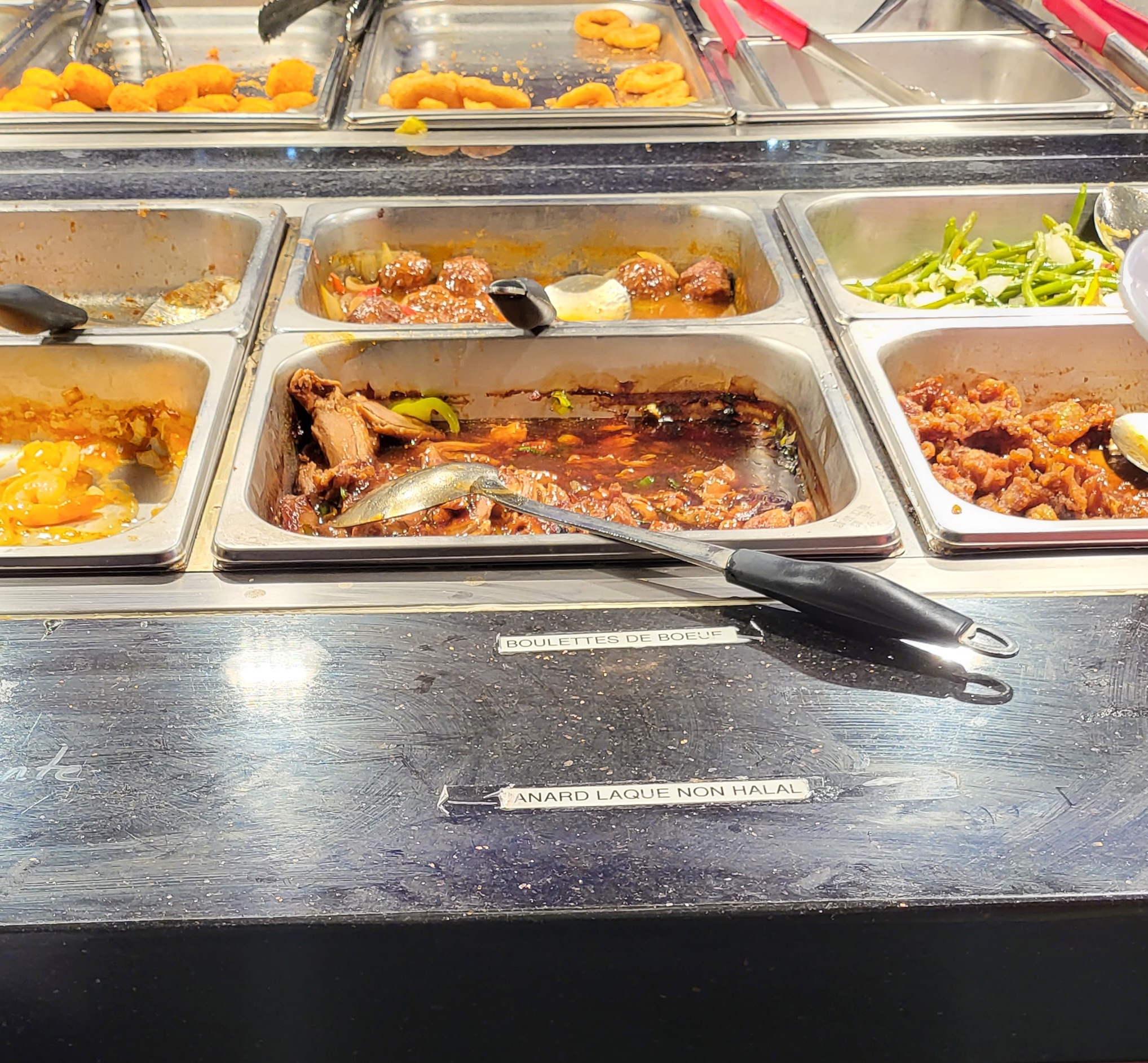 Habitué des buffets à volonté... celui ci est moyen et très axé sur la nourriture halal ! C est le premier restaurant asiatique qui se veut pro musulman sans l annoncer. Pas de porc dans les plats chauds... seul le canard laqué est affiché non halal ce qui sous entend que tout le reste l est.