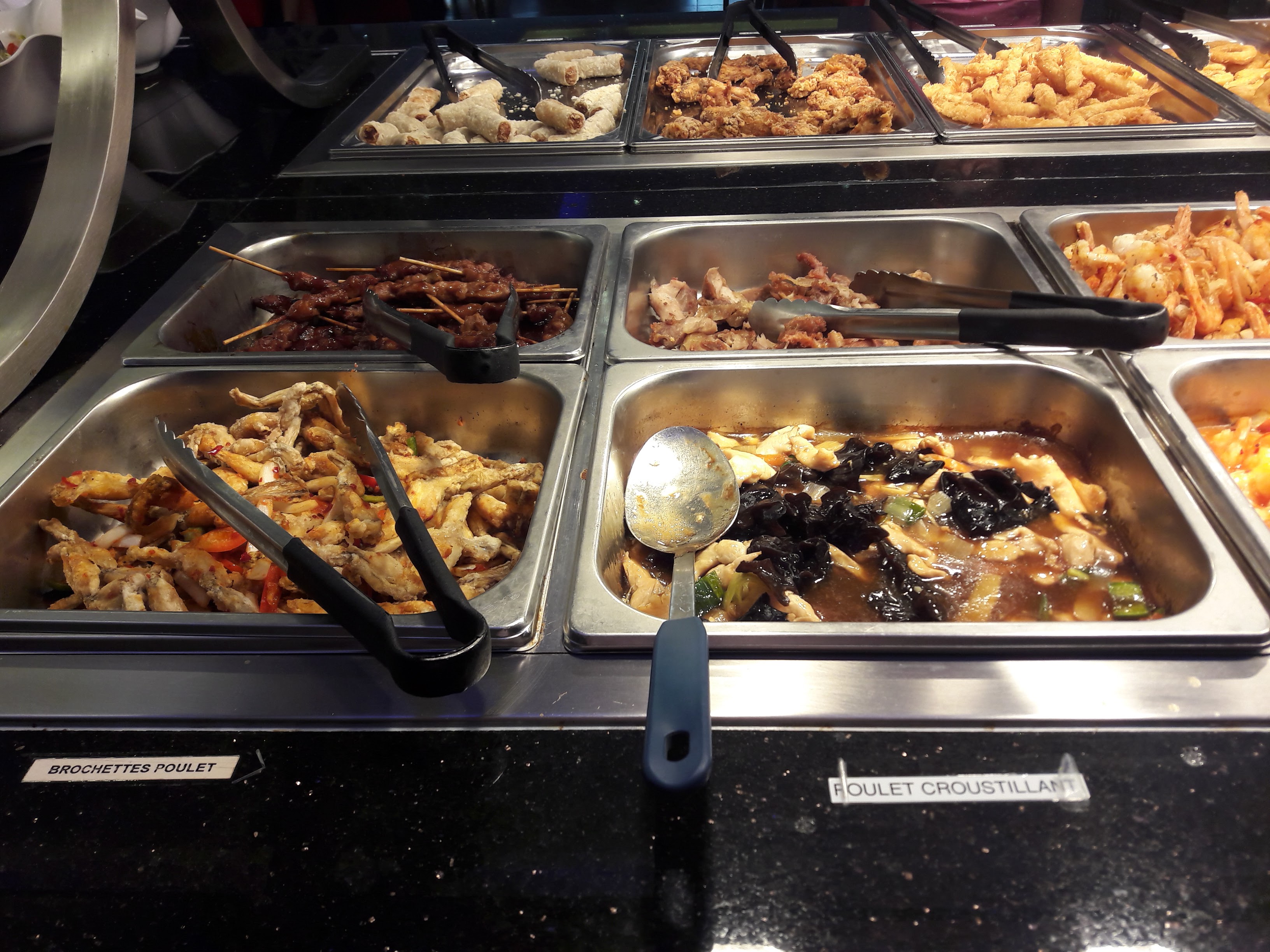 Buffet bien fourni, beaucoup de choix, la salle est spacieuse et pas trop bruyante, le service est bien. Seul bémol, une attente non négligeable pour les cuissons au wok.