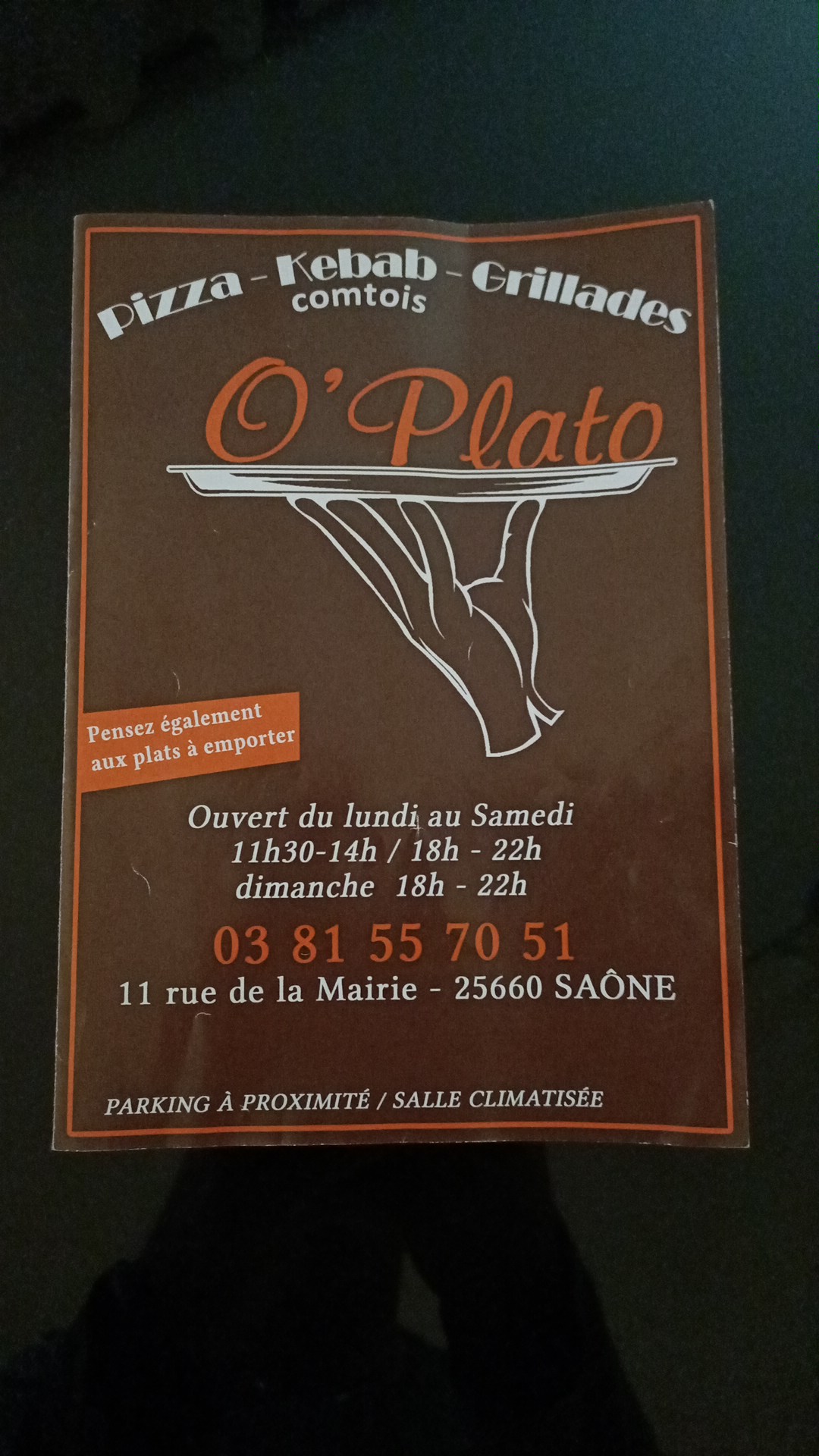 Voici toutes les informations sur le Restaurant O'Plato qui ce trouve au 11 Rue de la Mairie, 25660 Saône (25). Sur cette fiche vous trouverez les photos, l'adresse, les horaires d'ouverture, le numero de téléphone et les avis clients.Vous pouvez églement rédiger un avis si vous le souhaitez en bas de page.
