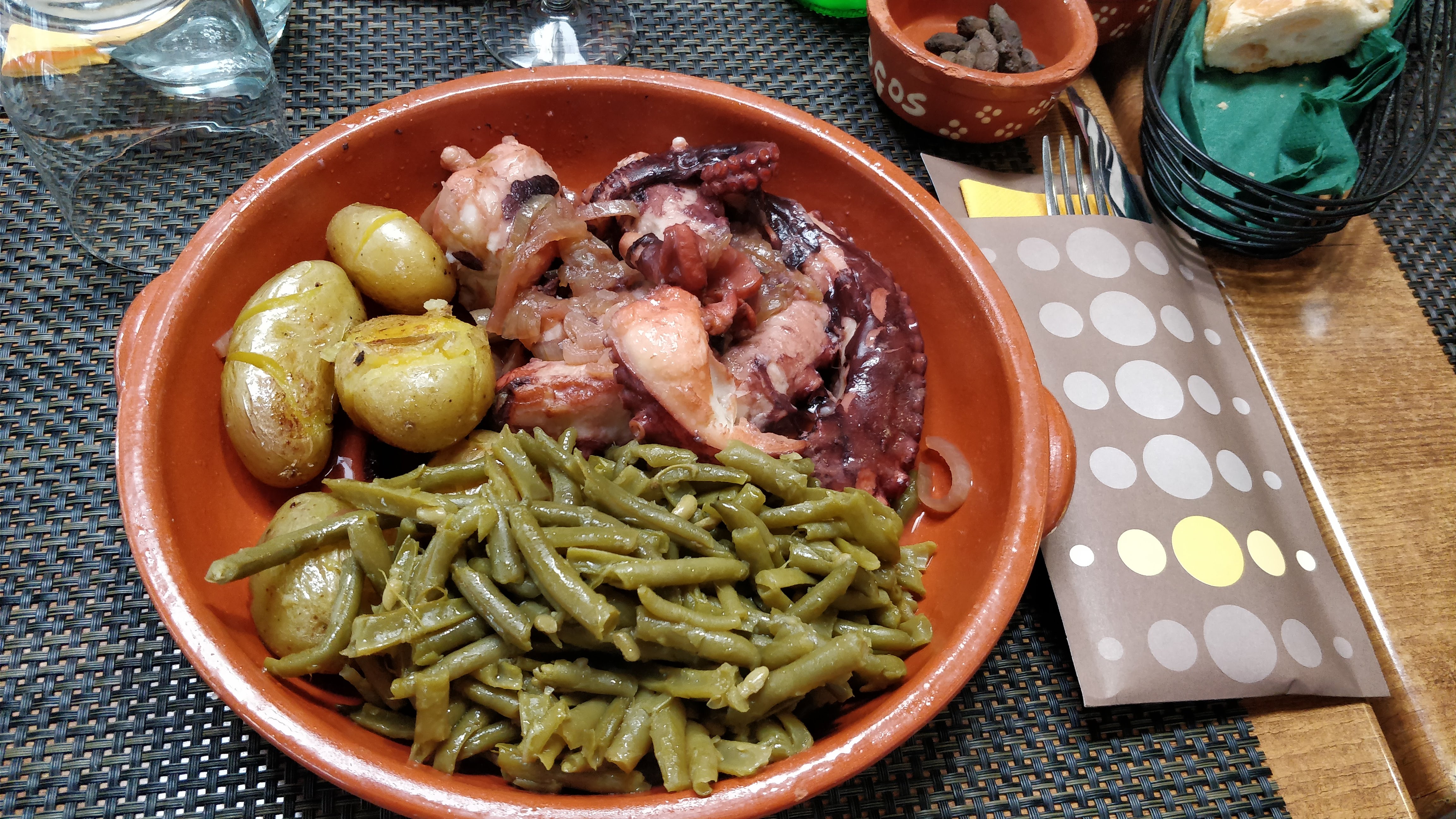Repas très fin et copieux. Beignets de morue avec l'apéritif, suivi du poulpe ou de la morue grillée puis en dessert un Créme du ciel. Délicieux. Une belle découverte dans ce restaurant où nous n'avions expérimenté que les plats à emporter.