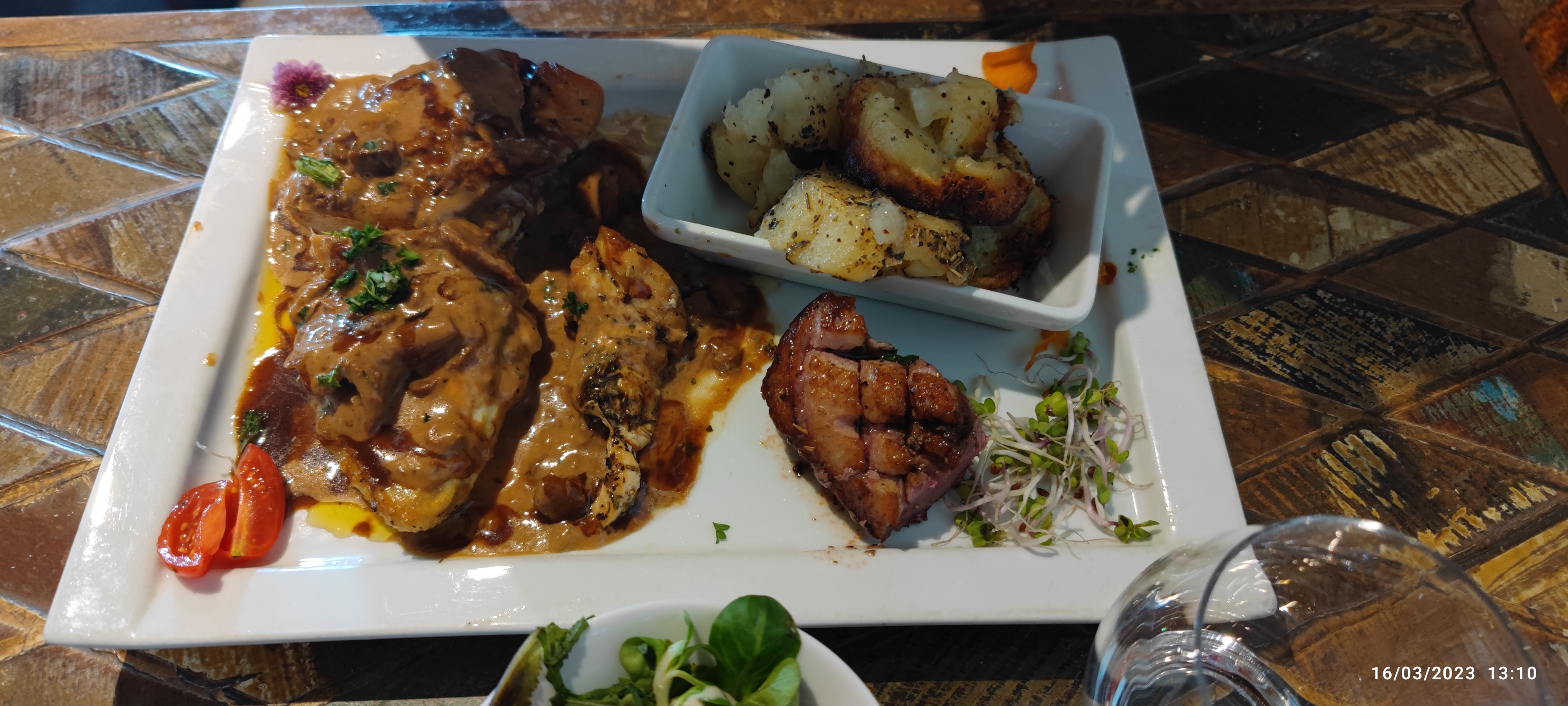 Plat excellent, très très bien servi, reparti avec un doggybag tellement ils servent bien. Le personnel est très accueillant, un patron super sympa. Et que dire de la mise en bouche servie avant le repas, un vrai délice