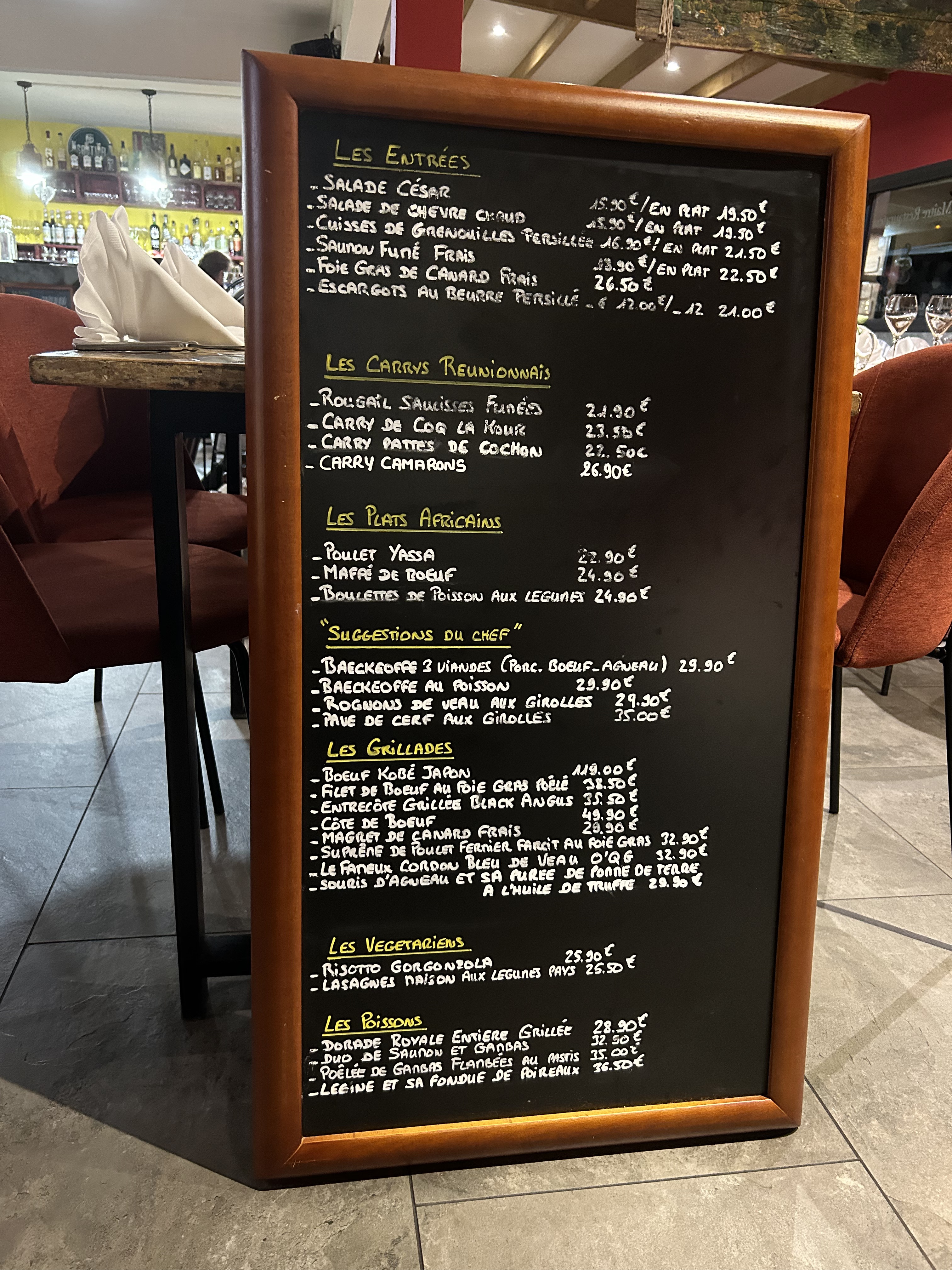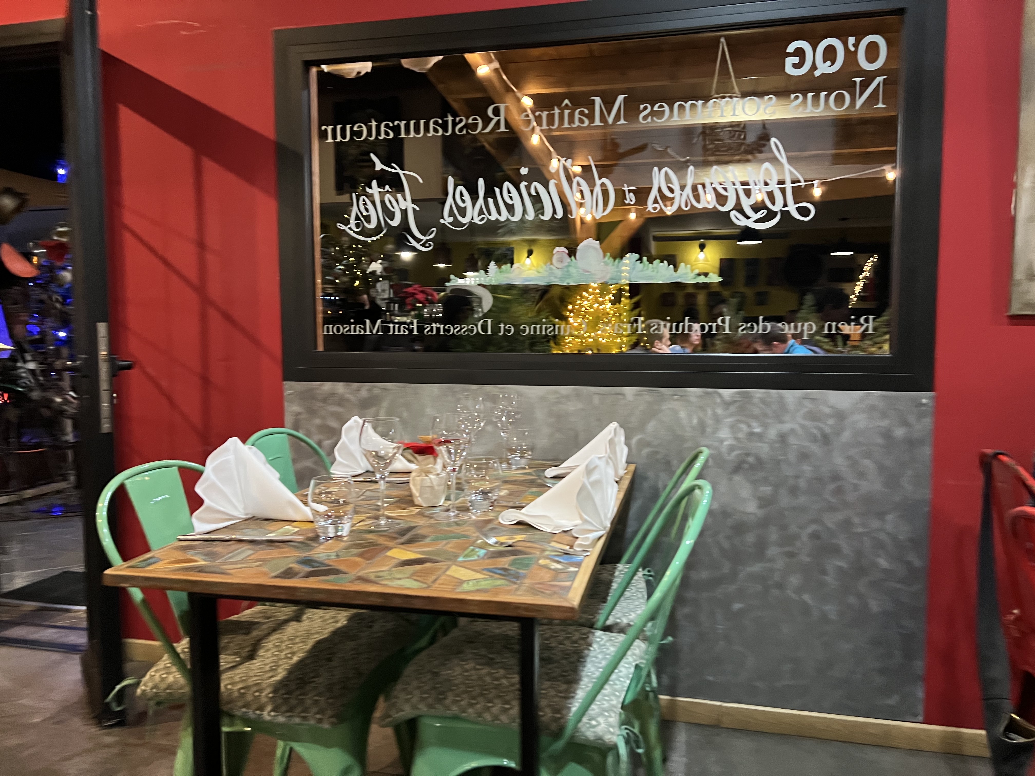 Nous avons découvert le restaurant durant notre première visite à la Reunion, en Juin 2022 et nous avons tellement apprécié que nous sommes revenus le 30 déc 2023. Nous avons commandé le bœuf au foie gras x2, le magret de canard et le cordon bleu de veau du O'QG. Un délice! Nous avons pris seulement 2 desserts maisons - profiterole et mousse aux chocolats (très copieuses) à partager avec les enfants. Il y a une belle carte du vin avec un large éventail de prix, donc facile à faire le choix (possibilité à commander aussi au verre). Pas de temps d'attente, très belle ambience (nous avons retrouvé l'ambiance de Noël comme en Europe, belle décoration extérieure) et très bon service. Nous recommandons vivement, mais attention, il faut réserver !