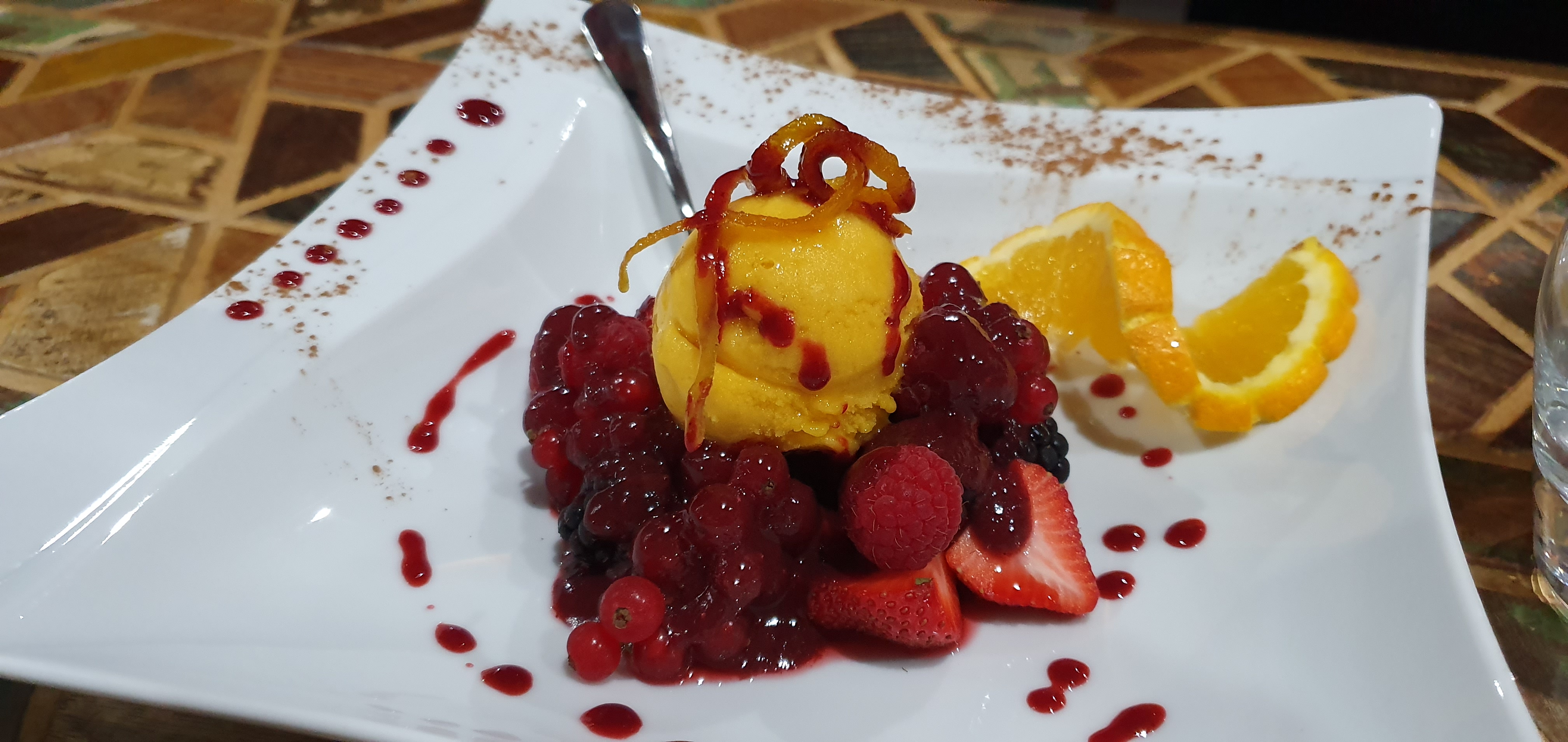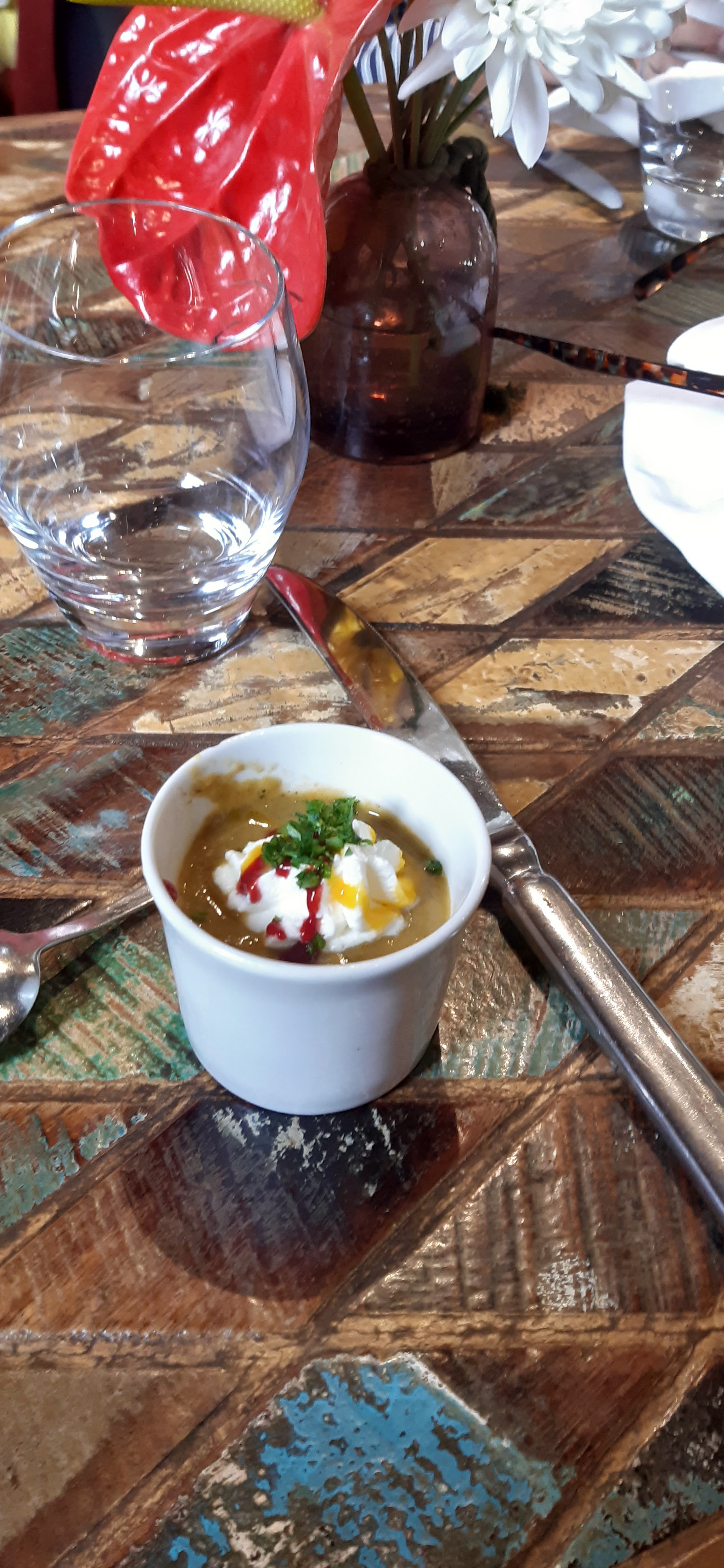 Tres belle découverte de cette cuisine variée en descendant du volcan. Il y en a pour tous les goûts ! Nous avons adoré de l'amuse bouche (une soupe épicée agrémentée d'une chantilly), en passant par les plats (avons opté pour des plats africains les sauces excellentes) et en terminant par l'ananas surprise et des glaces un délice. Les rhums arrangés sont bons également. Bravo pour la déco !