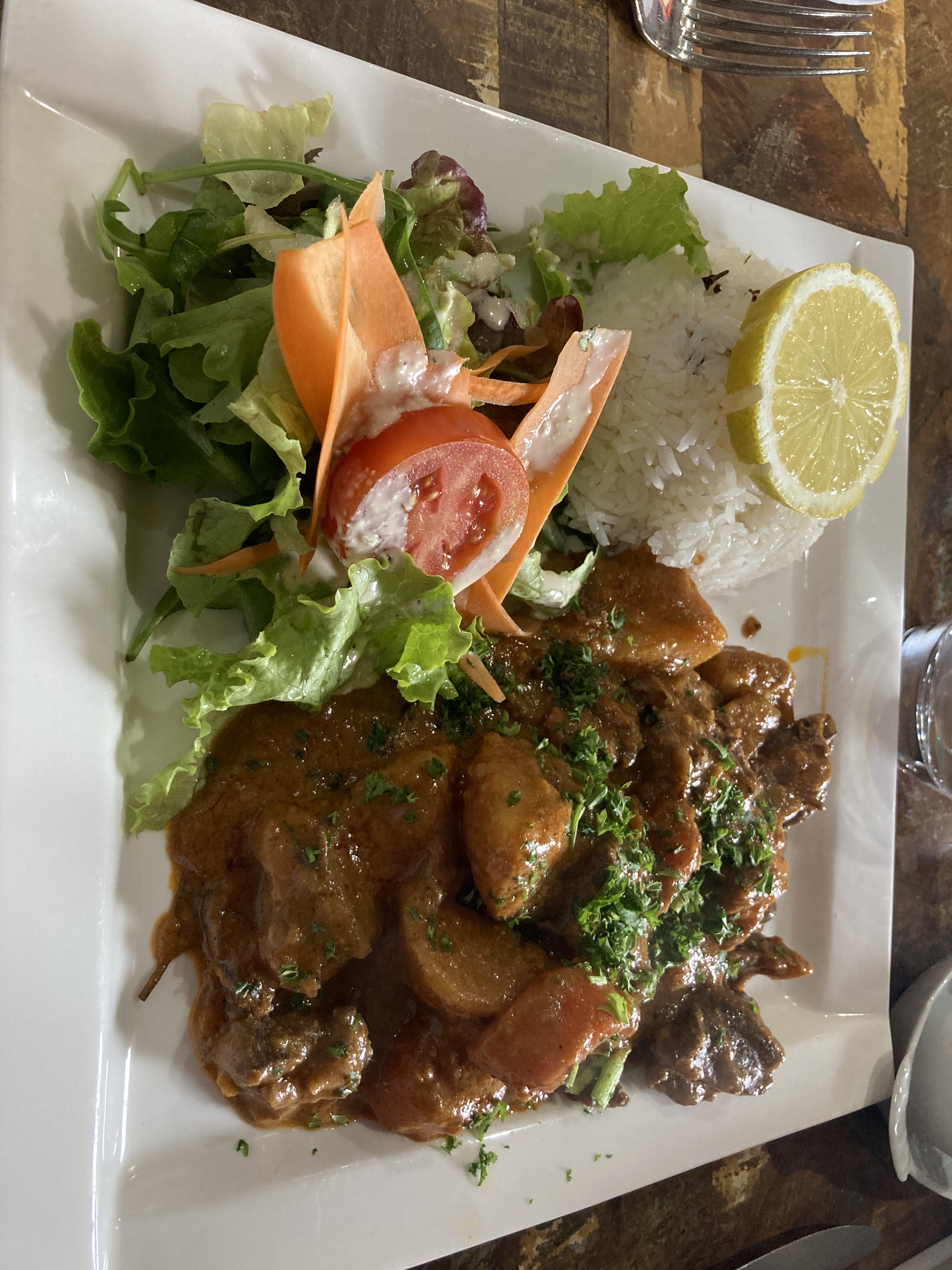 Très belle découverte : dépaysement assuré. Un mix de spécialités africaines et réunionnaises. C’est très bon, c’est copieux. L’idéal après une rando jusqu’au cratère du piton de la fournaise. Un régale
