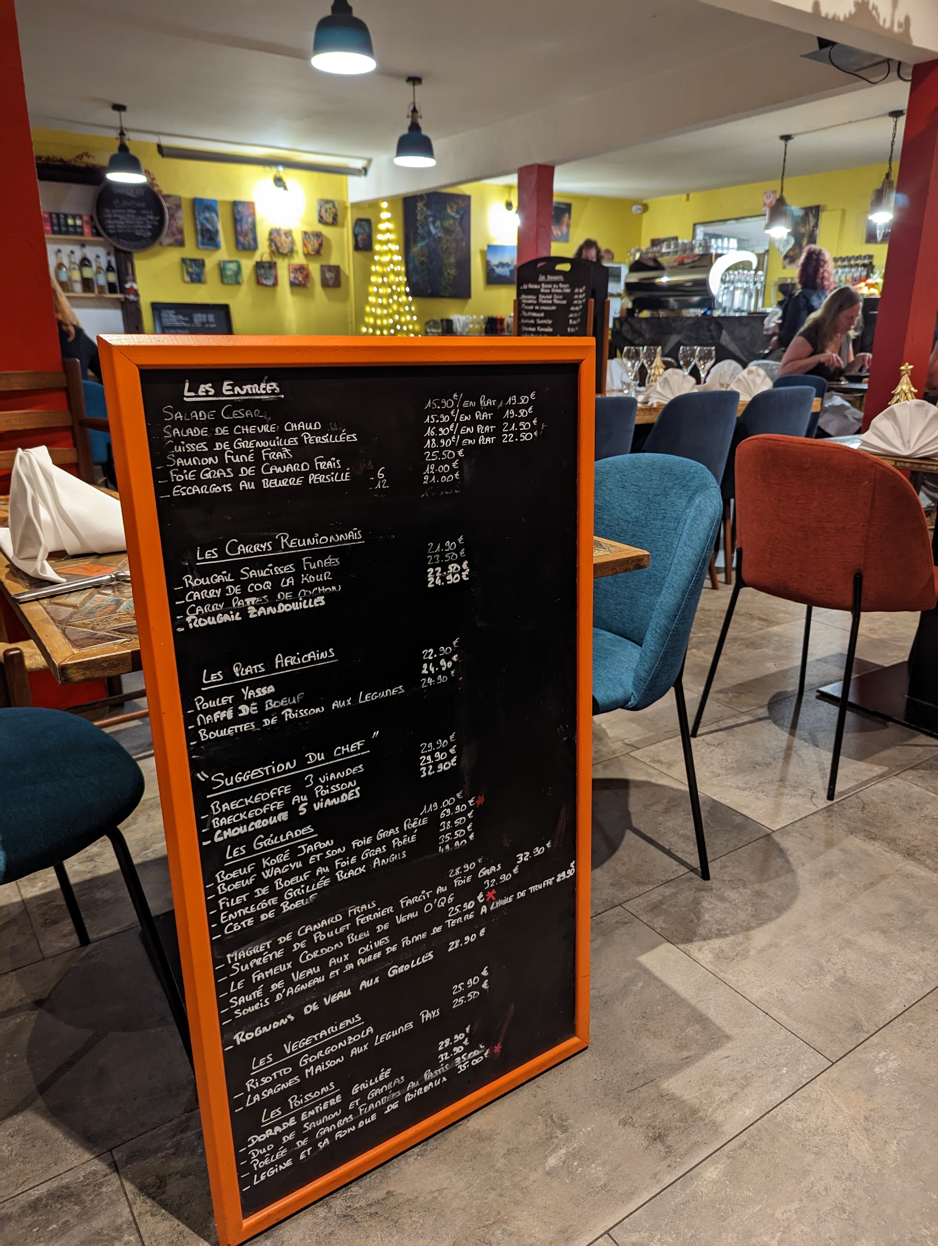 Changement de propriétaire avec travaux d effectué. Toujours repas africain sur la carte ainsi que de l île . Petit clin d'œil œil à l Alsace pour le dessert . Prévoir de réserver pour manger . Les assiettes sont copieuse et aussi la possibilité de partir avec un bag. Parking a proximité et vaste .